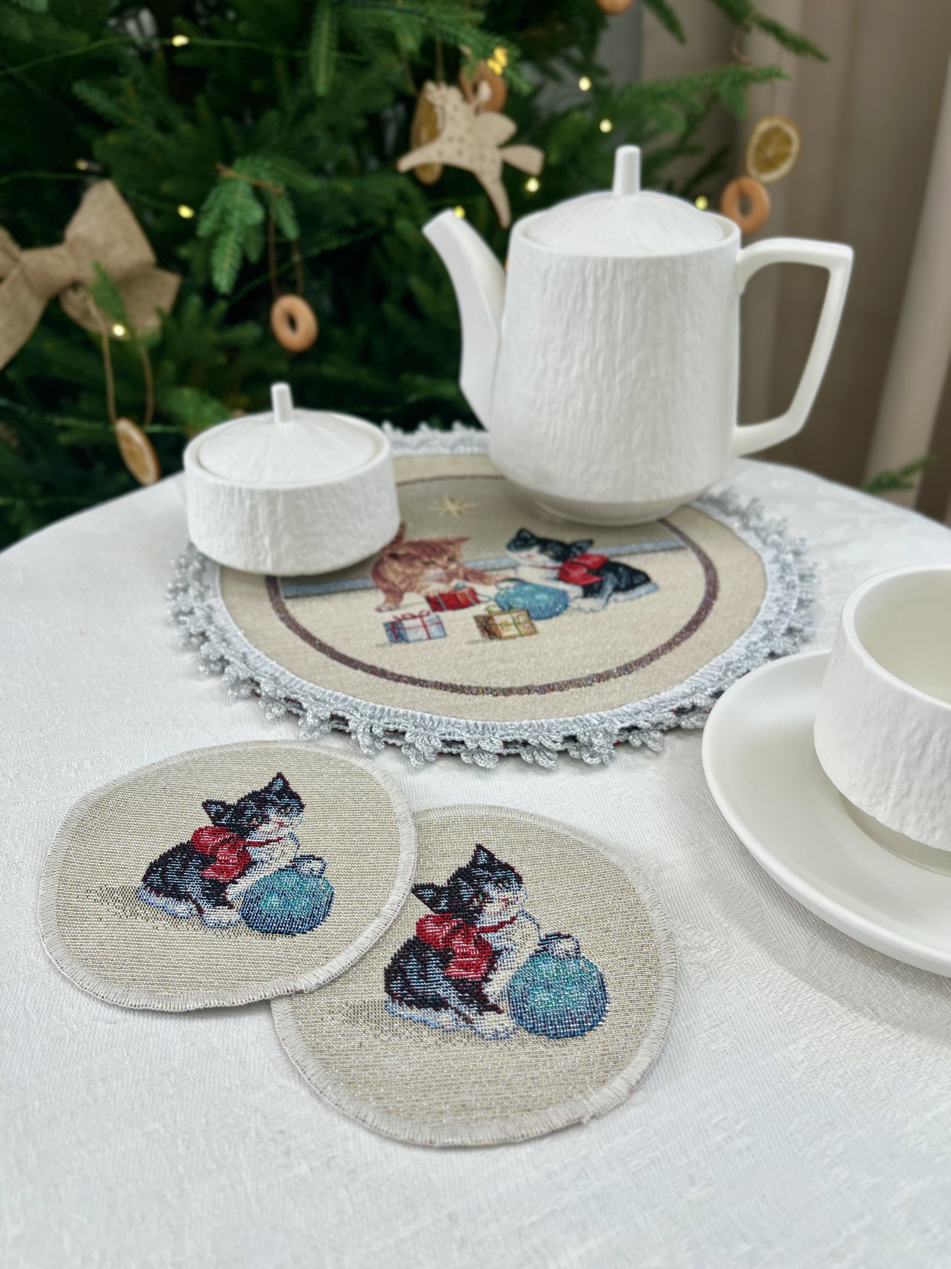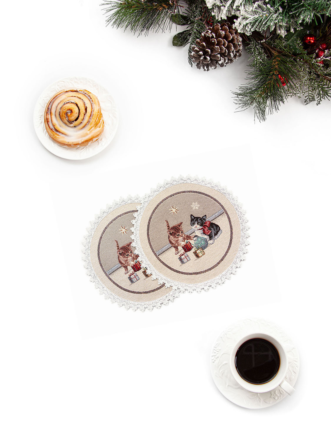Котята у камина Комплект салфеток 2шт д27 см 2107421 люрекс