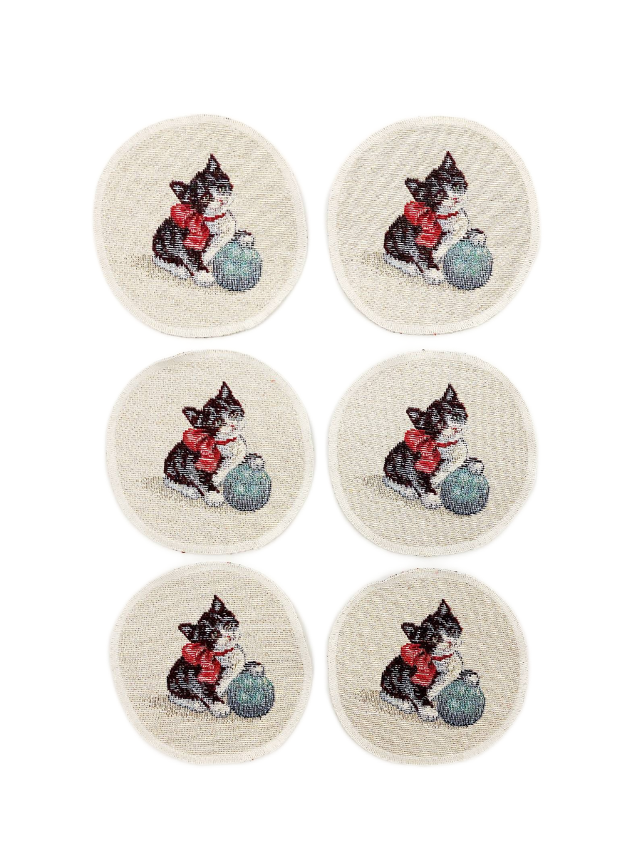 Котята у камина Комплект салфеток 6шт д11 см БТ серебро 2107804