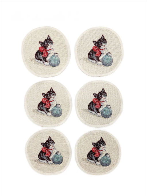 Котята у камина Комплект салфеток 6шт д11 см БТ серебро 2107804