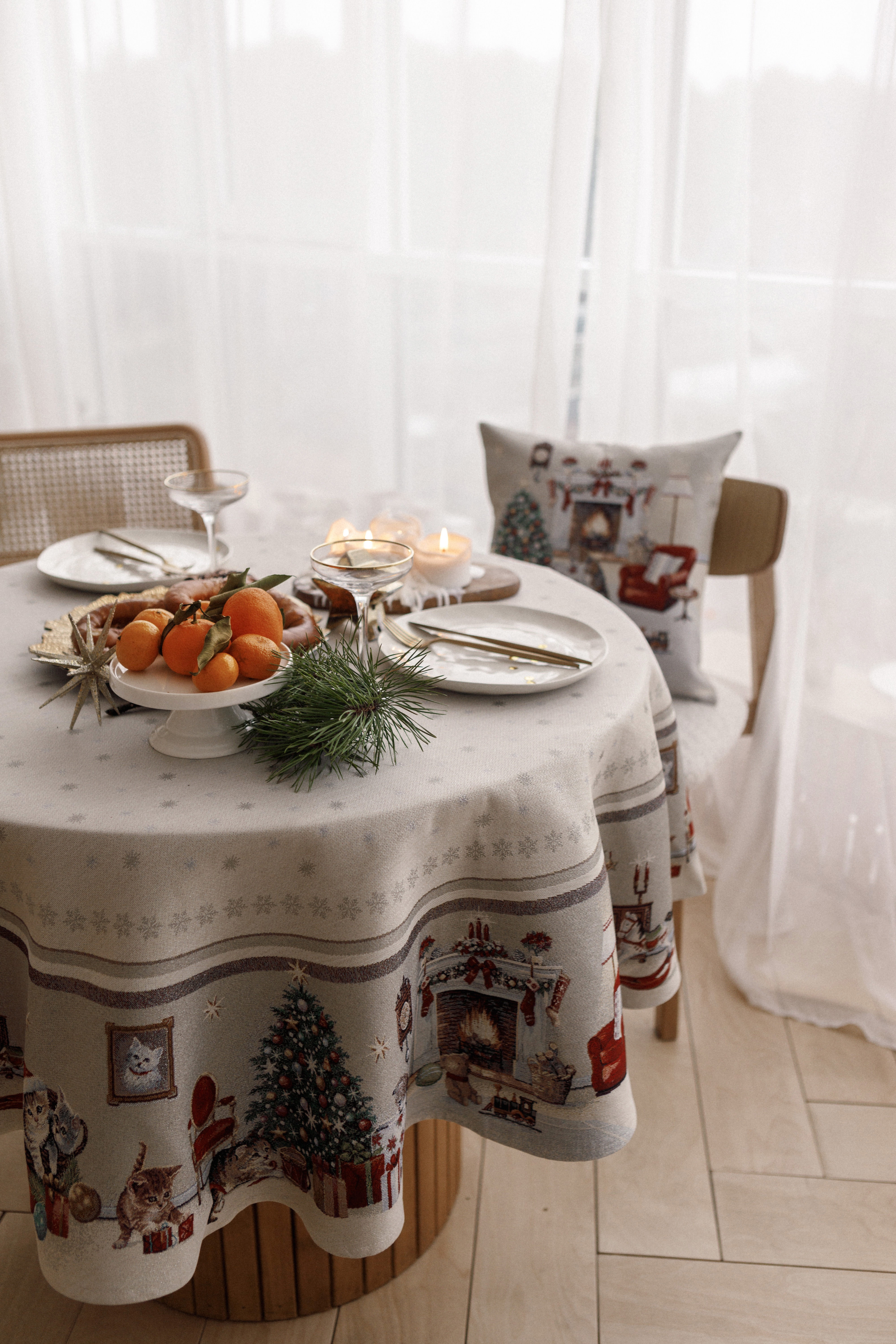 Котята у камина Скатерть круг д165 см 2107086
