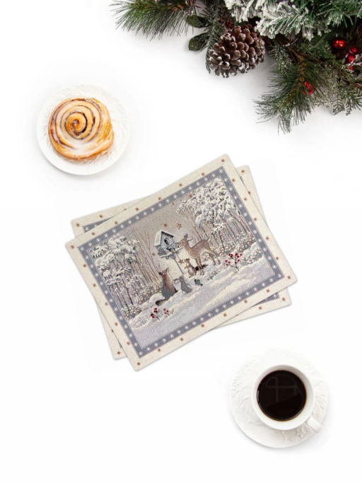 Лесные друзья у кормушки Комплект салфеток 2шт 35х45 см 2104329 Серебро