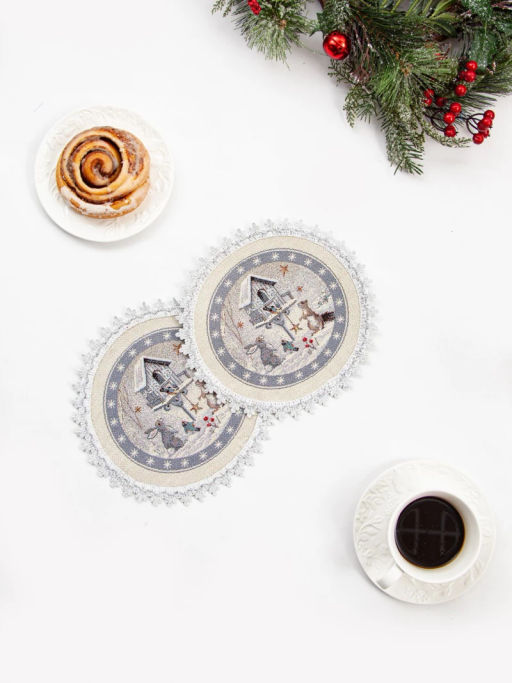 Лесные друзья у кормушки Комплект салфеток 2шт д27 см серебро 2104544