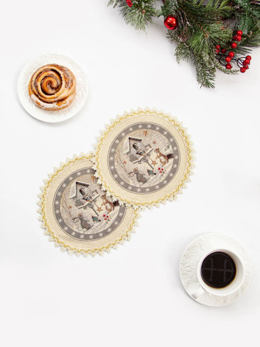 Лесные друзья у кормушки Комплект салфеток 2шт д27 см золото 2104542