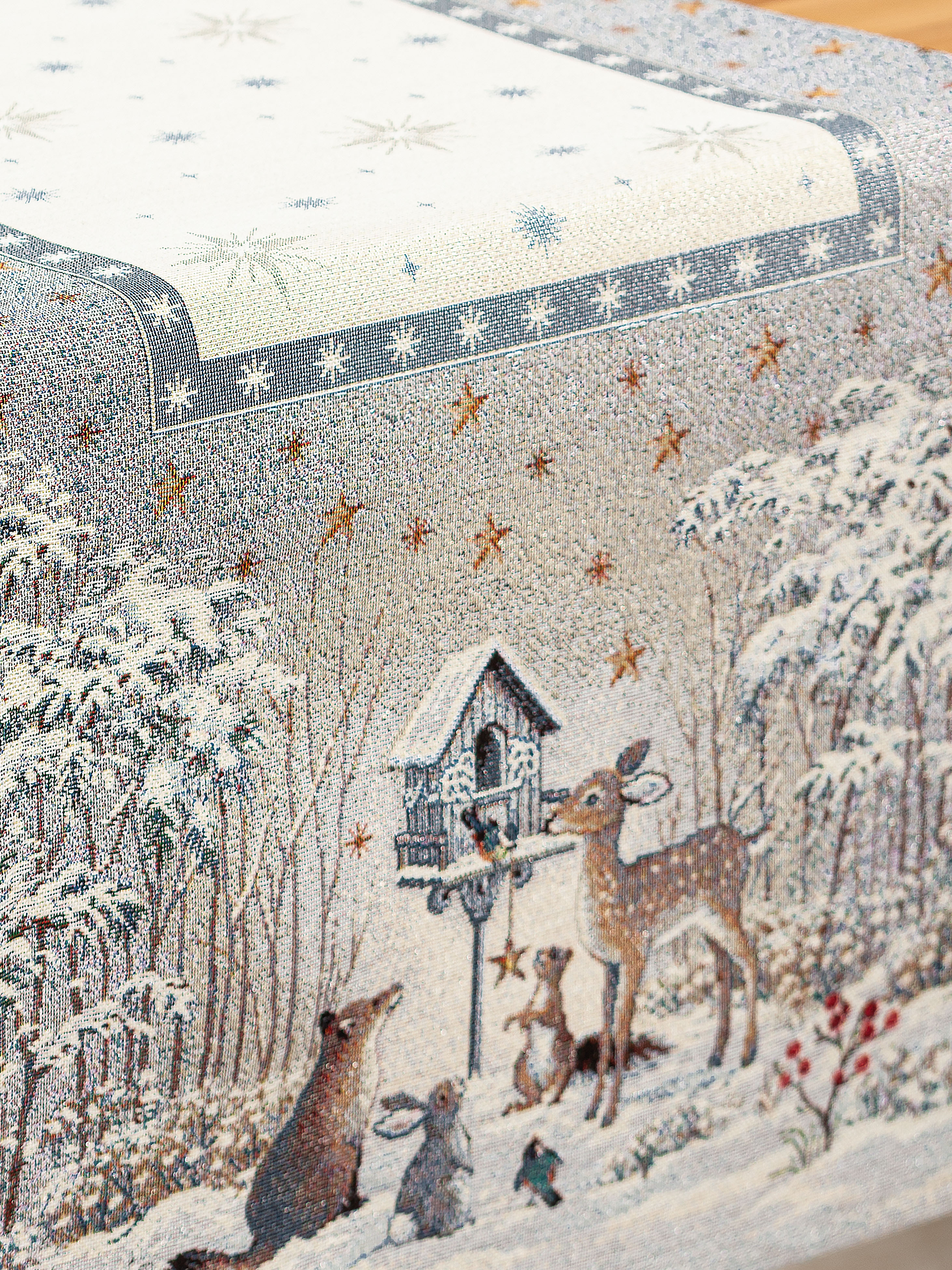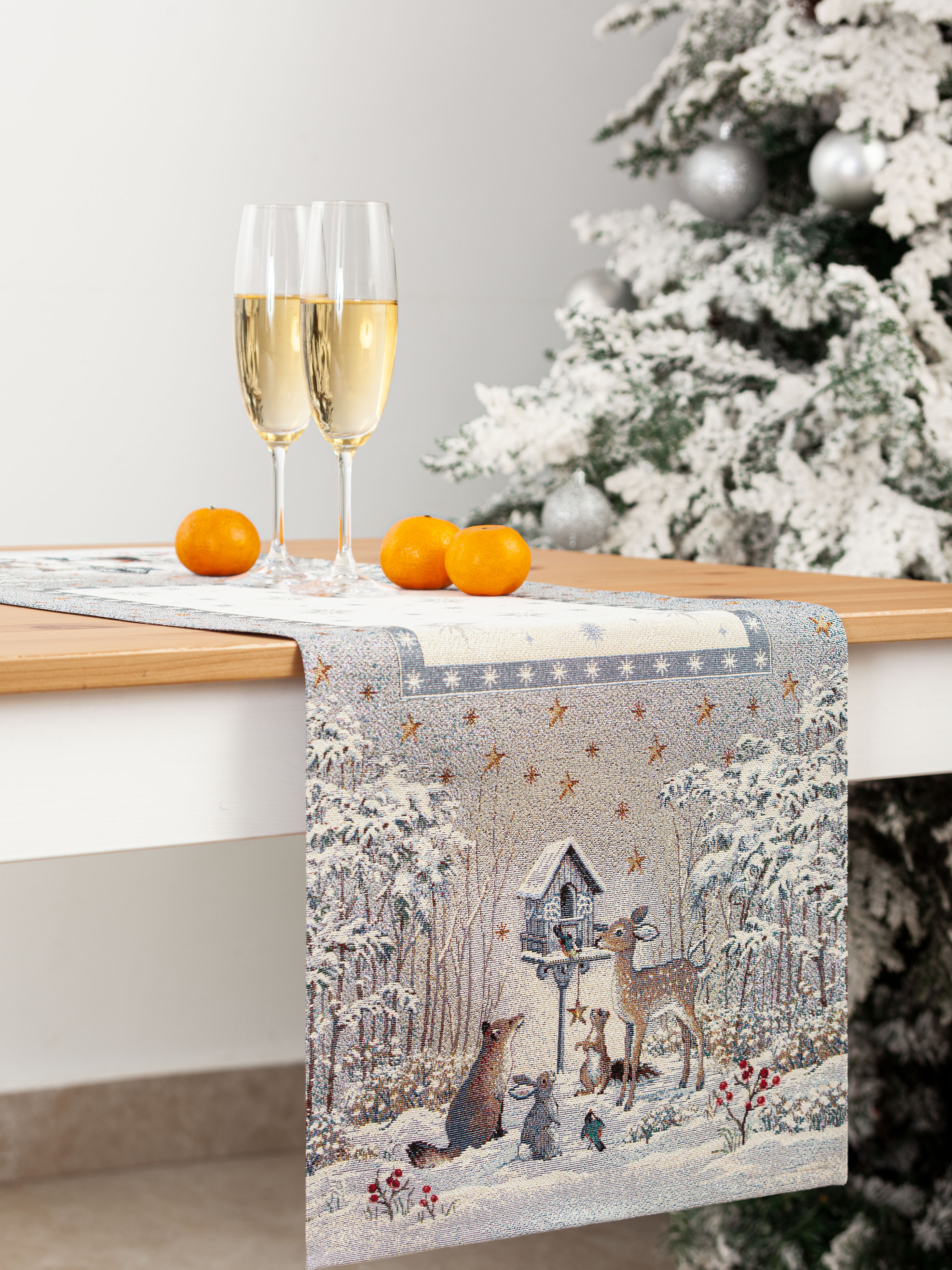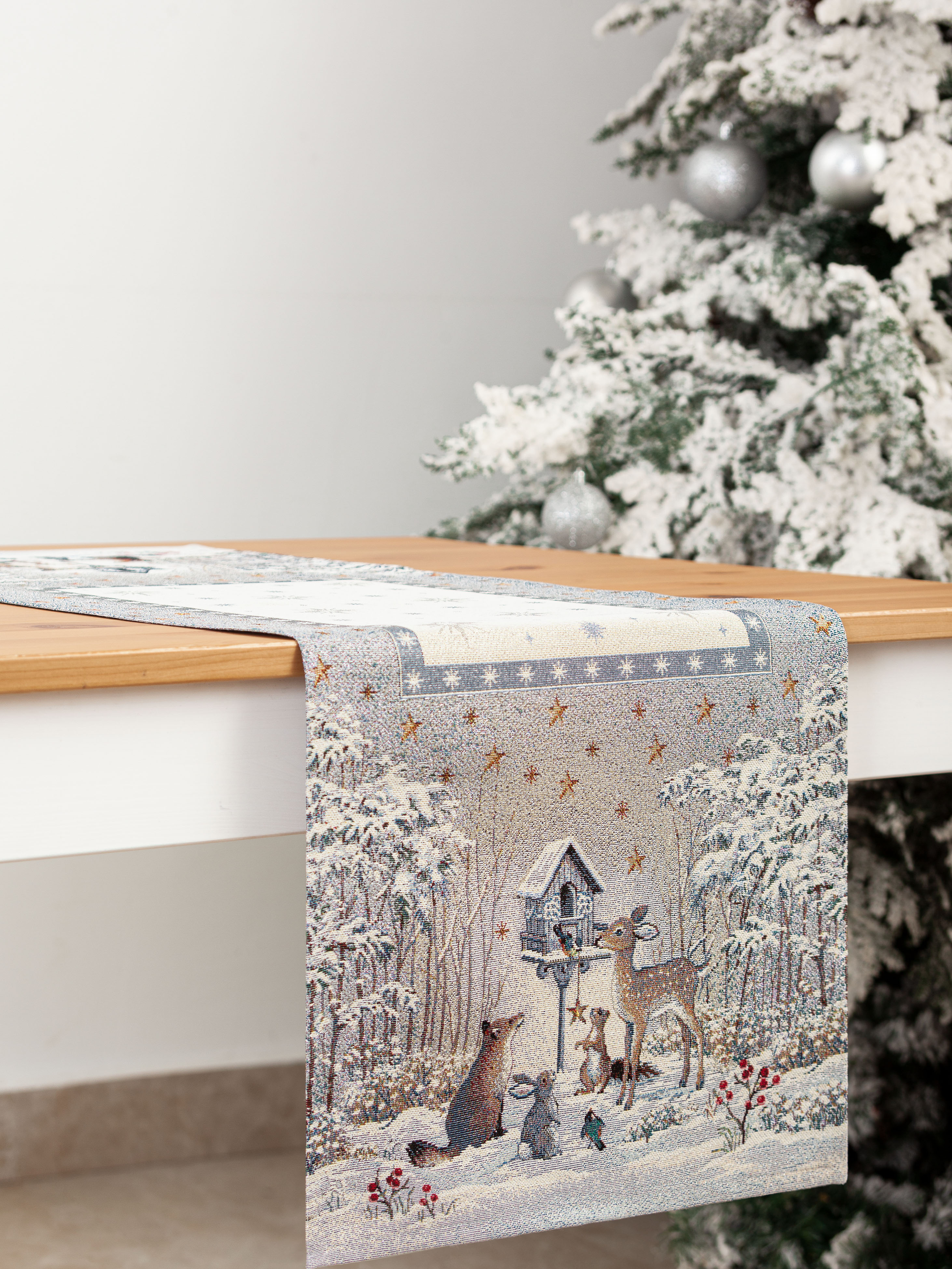 Лесные друзья у кормушки Салфетка 40х100 см 2101300 Серебро