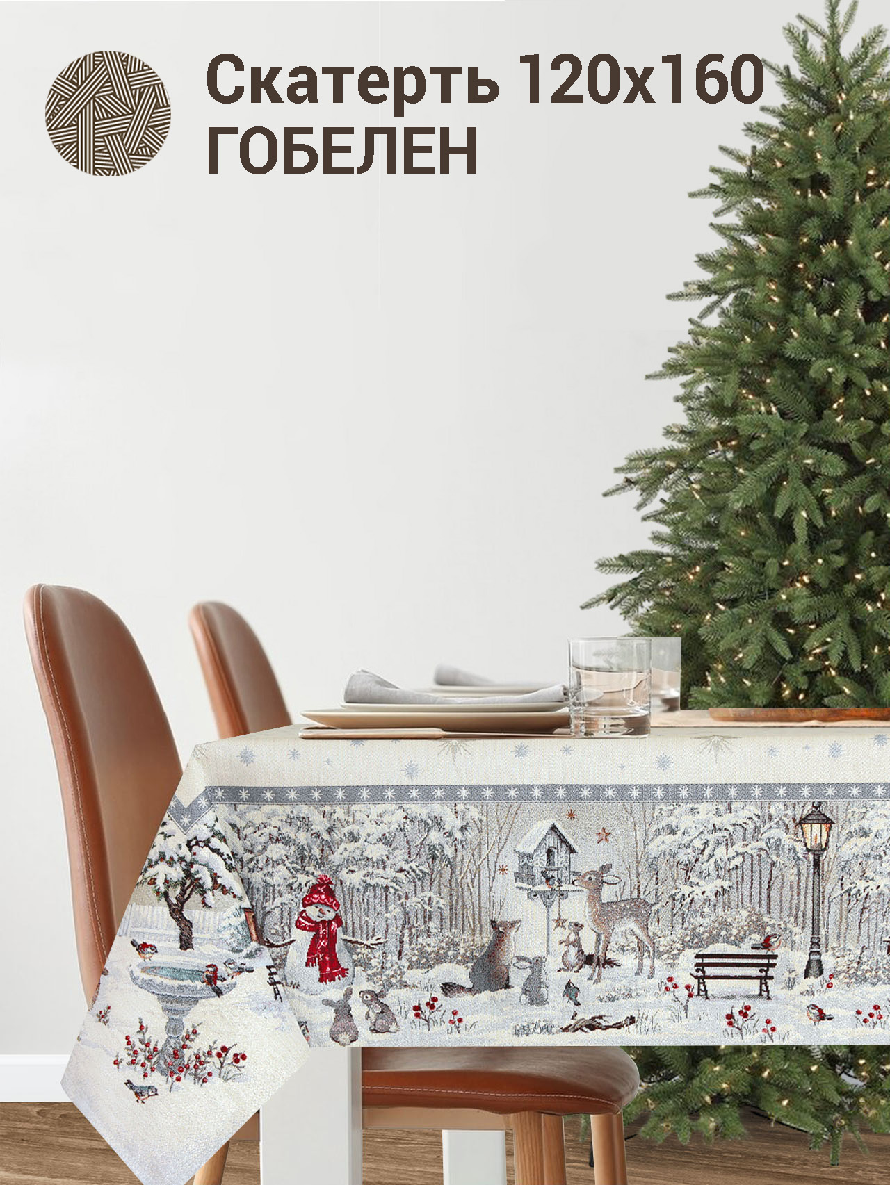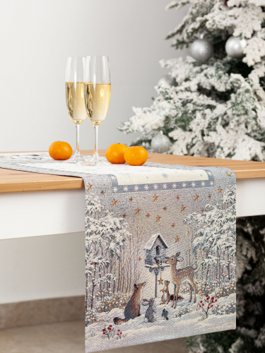 Лесные друзья у кормушки Скатерть 120х160 см 2413812 серебро