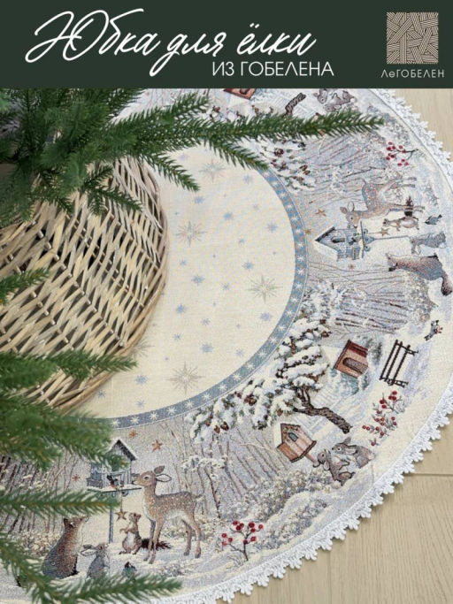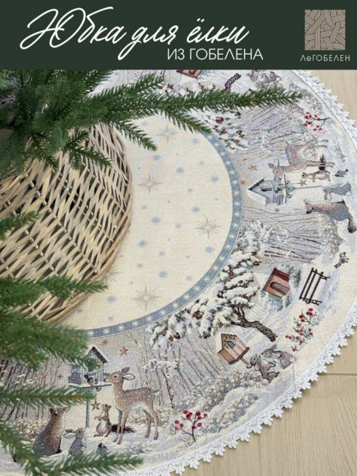 Лесные друзья у кормушки Юбка для елки д93 см тесьма 2104081 серебро
