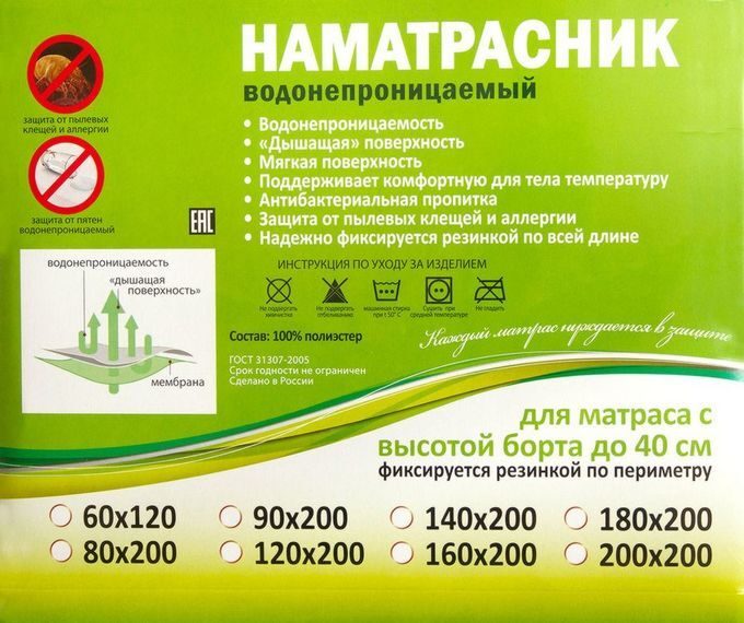 Наматрасник совмещает в себе функции постельного белья и чехла, защищающего матрас от попадания влаги. Благодаря резинке по всему периметру, наматрасник как чехол надевается на матрас, что не дает ему возможности собираться и сползать.