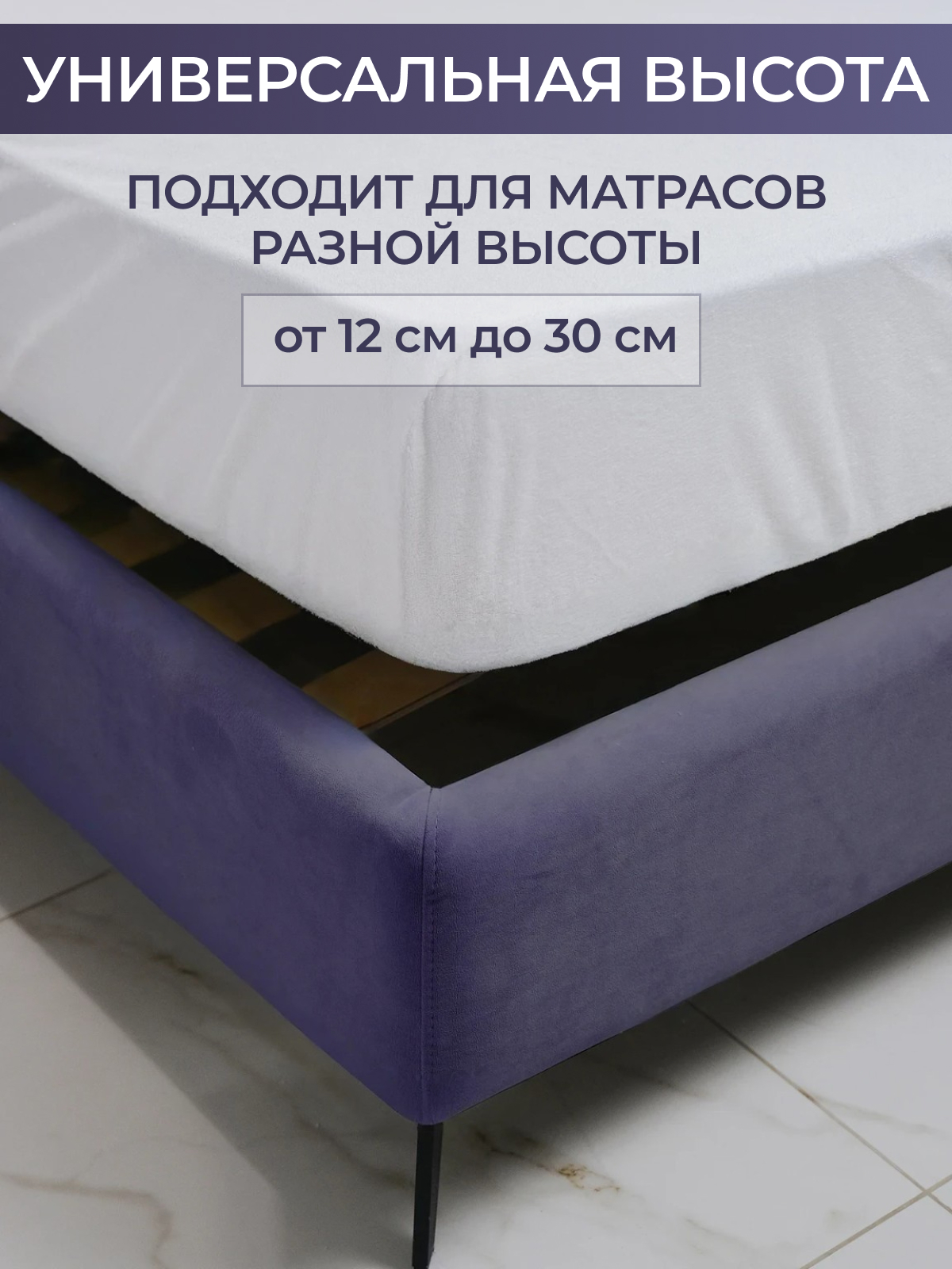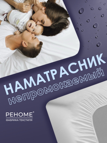 Непромокаемый наматрасник с юбкой (30 см) и резинкой по периметру. Материал: белая трикотажная махровая ткань с полимерным напылением с обратной стороны. Создаётся дышащая влагостойкая структура (мембрана), защищающая матрас от загрязнений.