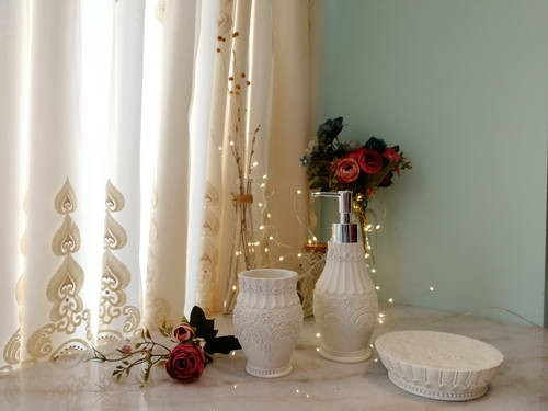 Комплектация: Дозатор для жидкого мыла 1 шт Стаканчик для зубных щеток 1 шт Мыльница для твердого мыла 1 шт