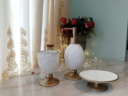 Комплектация: Дозатор для жидкого мыла 1 шт Стаканчик для зубных щеток 1 шт Мыльница для твердого мыла 1 шт