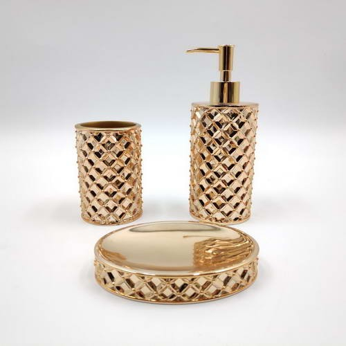 Комплектация: Дозатор для жидкого мыла 1 шт Стаканчик для зубных щеток 1 шт Мыльница для твердого мыла 1 шт