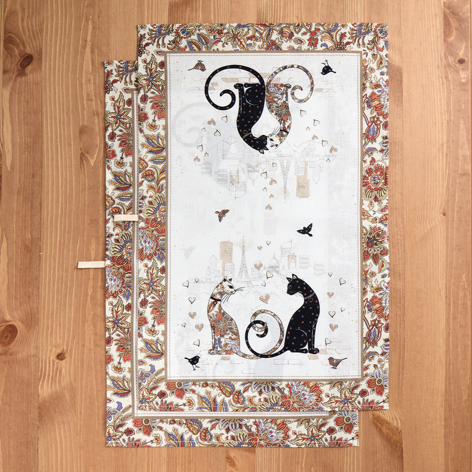 НАБОР ПОЛОТЕНЕЦ ИЗ 2-Х ШТ "ПАРИЖСКИЕ КОТЫ" 40Х60СМ, 100% ХЛОПОК, БЕЛЫЙ ТВИЛ