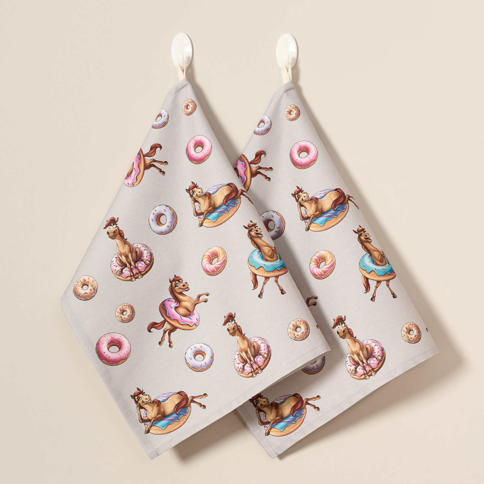 НАБОР ПОЛОТЕНЕЦ ИЗ 2ШТ "ЛОШАДЬ В ПОНЧИКАХ",СЕРЫЙ,40Х60СМ ТВИЛ,100% ХЛОПОК