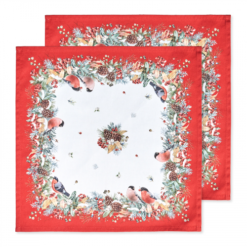 НАБОР САЛФЕТОК ИЗ 2-Х ШТ "МОРОЗКО.СНЕГИРИ",40Х40СМ, 100% ХЛОПОК,КРАСНЫЙ,ТВИЛ,