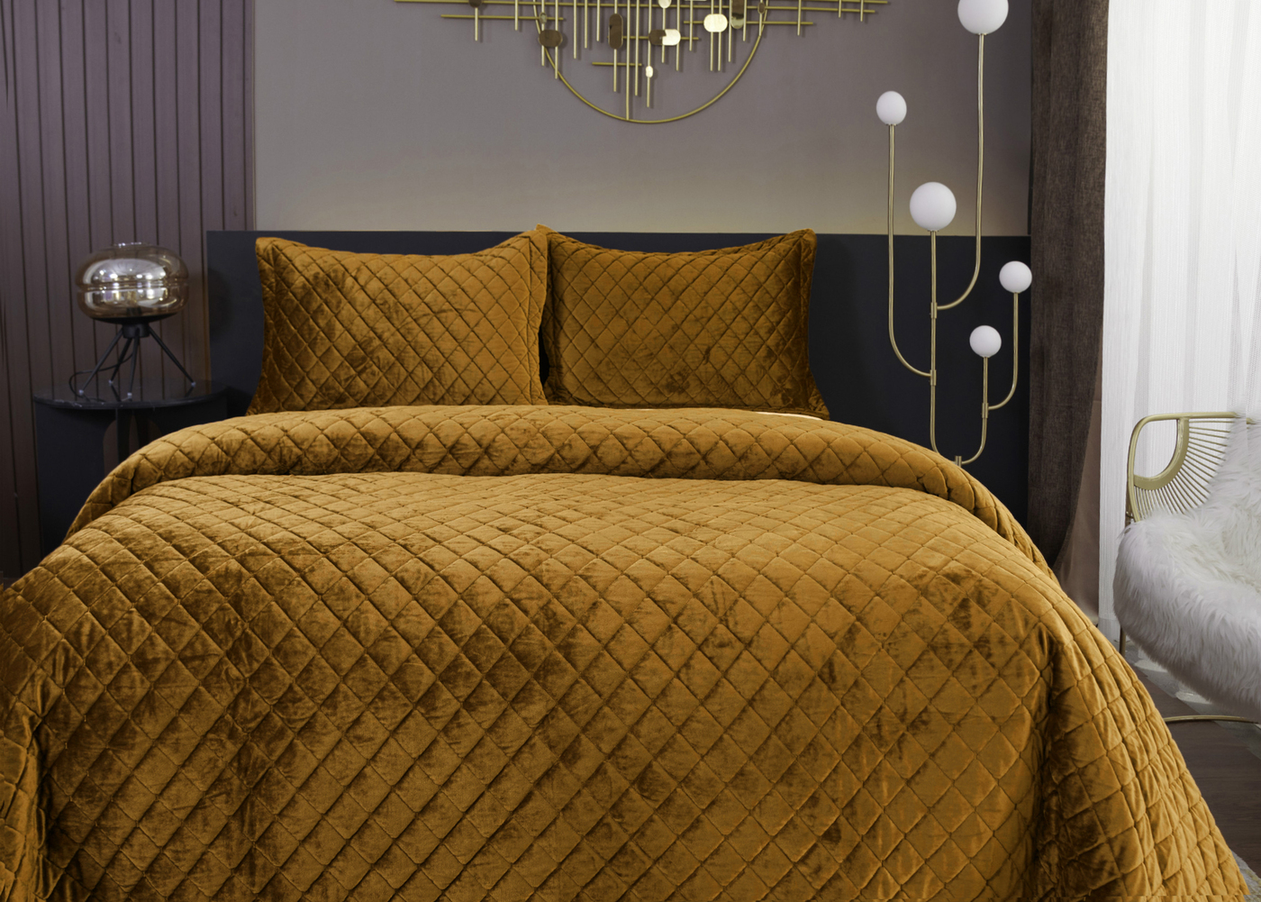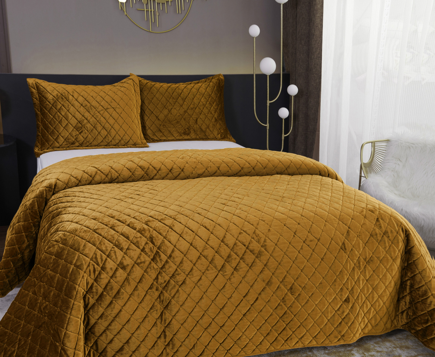 Натаниэль (горчичный) Покрывало 160х220