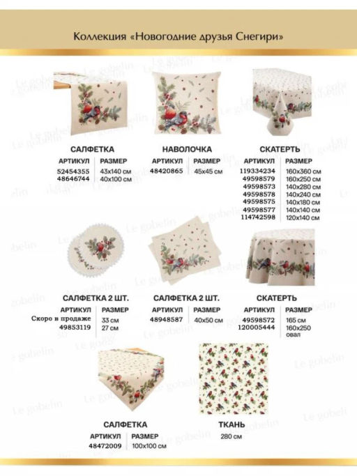 07.09.25 Нижегородская обл. LeGobelin - волшебный мир гобеленов: скатерти, салфетки, наволочки и многое другое. Создаем уют и красоту в доме! Готовимся к новогодней сказке!Выкуп 6/25