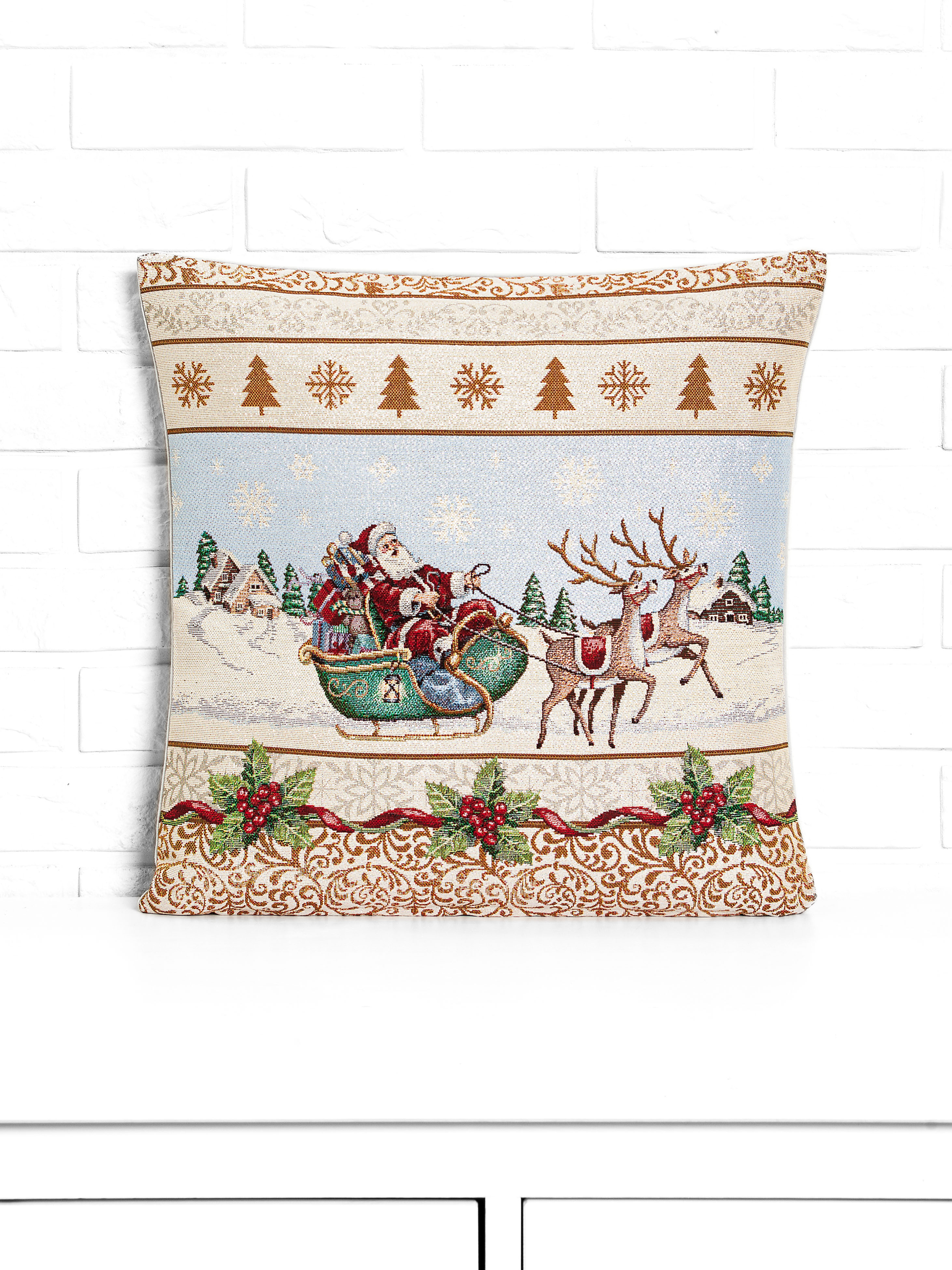 Новогодний узор Упряжка Наволочка 45х45 см 2109391