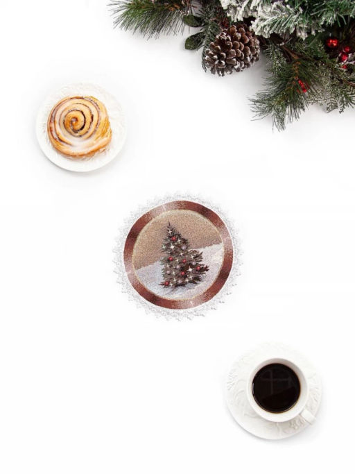 Новогодний вечер бежевый фон Комплект салфеток 2шт круг д24 см 2105781