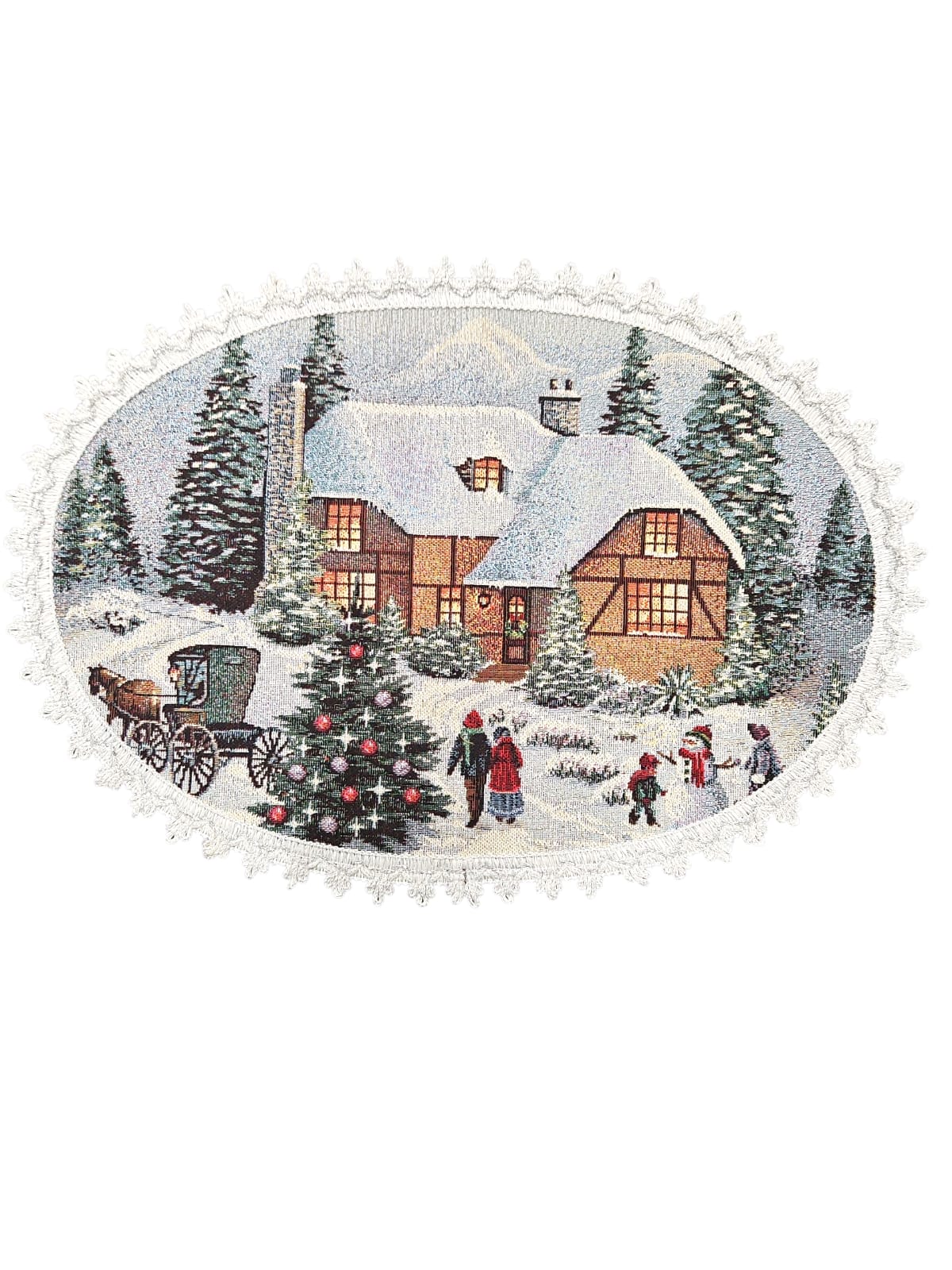 Новогодний вечер голубой фон Салфетка овал 30х42 см тесьма 2414931
