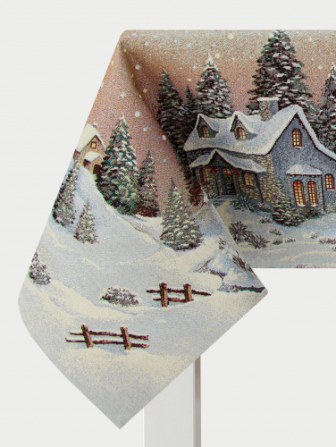Новогодний вечер бежевый фон Скатерть Овал 160х300 см серебро 2518955 New