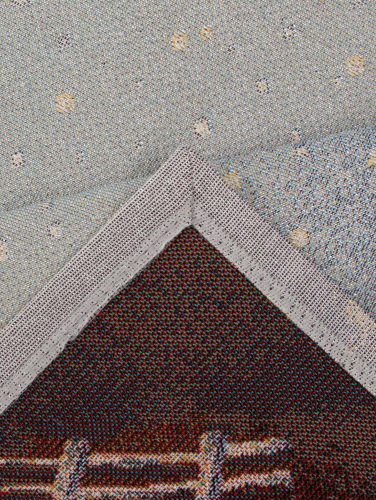 Рисунок создается переплетением нитей различных цветов и фактуры. Состав ткани: хлопок ( дающий фактуру и приятную тактильность ) и синтетические нити ( придающие износостойкость ). Плотность гобелена 410 г на кв.метр.
