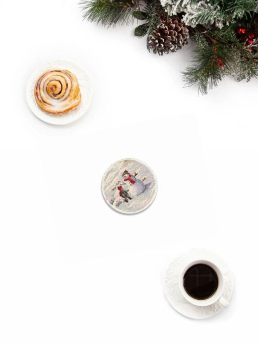Новогодний вечер Снеговик Комплект салфеток 6шт д11 см БТ серебро 2107416
