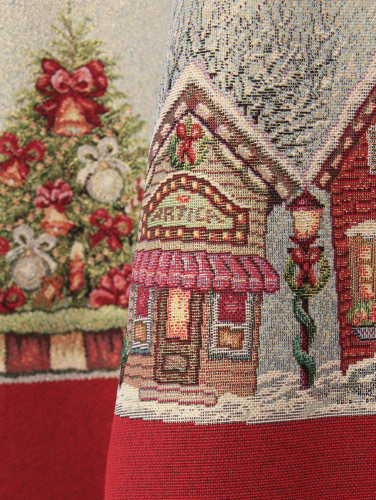 Рисунок создается переплетением нитей различных цветов и фактуры. Состав ткани: хлопок ( дающий фактуру и приятную тактильность ) и синтетические нити ( придающие износостойкость ). Плотность гобелена 410 г на кв.метр.
