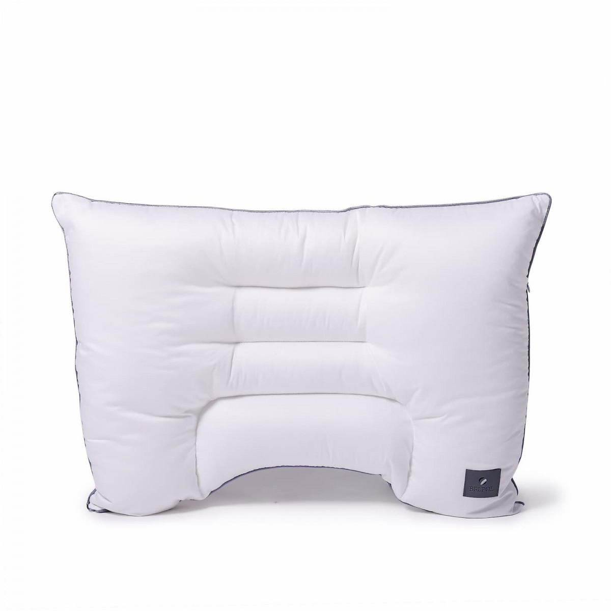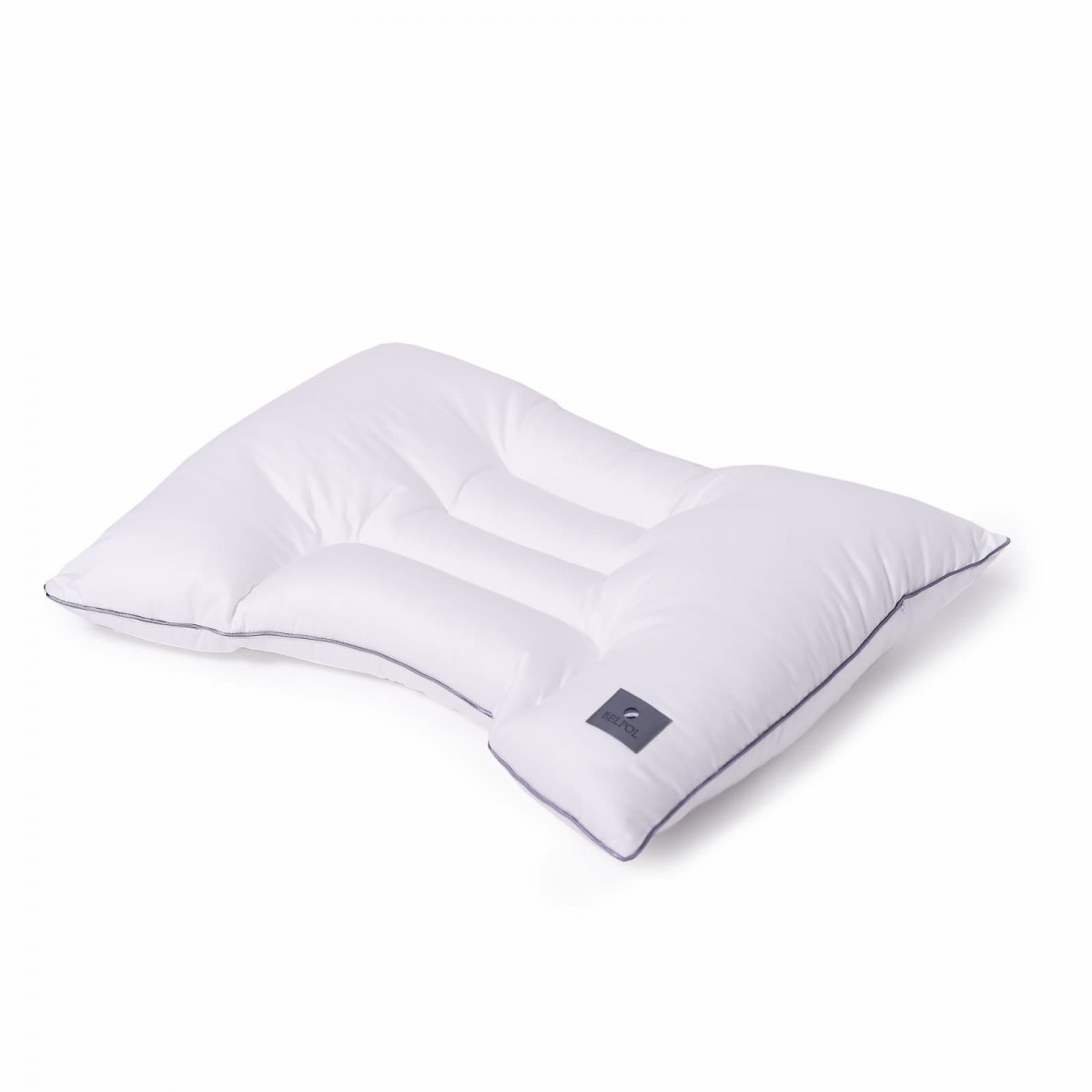 Подушка анатомической формы, с изгибом под плечо, с уплотненным шейным валиком, с рельефной зоной затылочной области. На молнии, с клапаном для легкого ухода.
