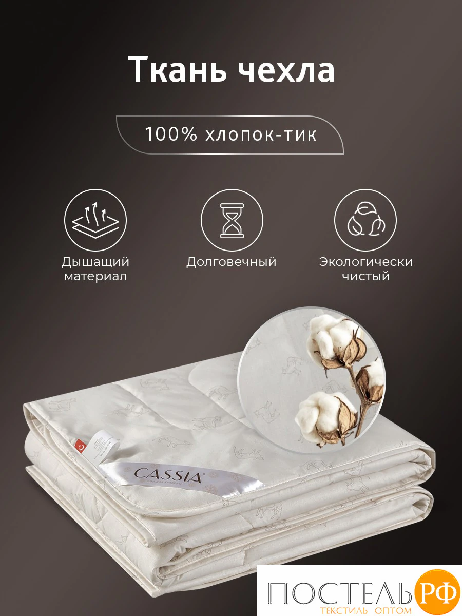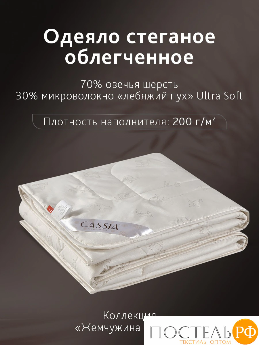 CASSIA ЖЕМЧУЖИНА ТИБЕТА лайт Одеяло 172х205,1пр.,хл./шерсть/микровол., 200г/м2