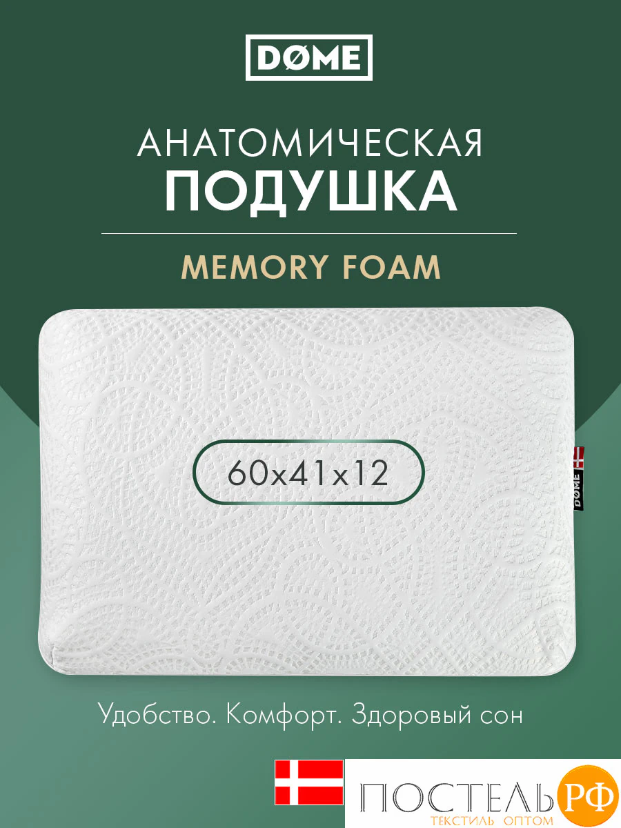 Dome РОДВИГ КЛАССИК бел Подушка анатомическая 60х41х12, 1 пр., плстр/пенополиуретан