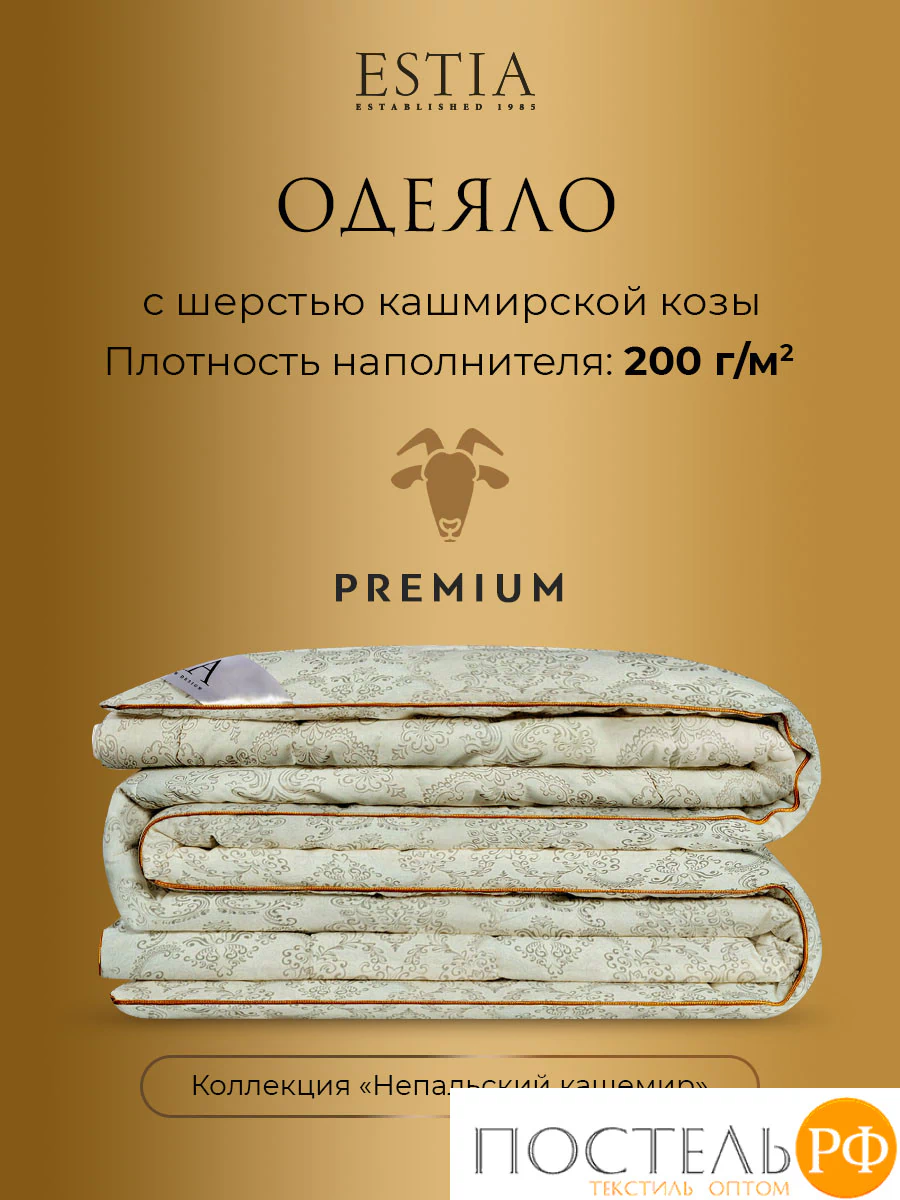 Estia НЕПАЛЬСКИЙ КАШЕМИР Одеяло 140х200, 1пр., хл./кашемир.шерсть/полиэф.вол., 200 г/м2, КТ