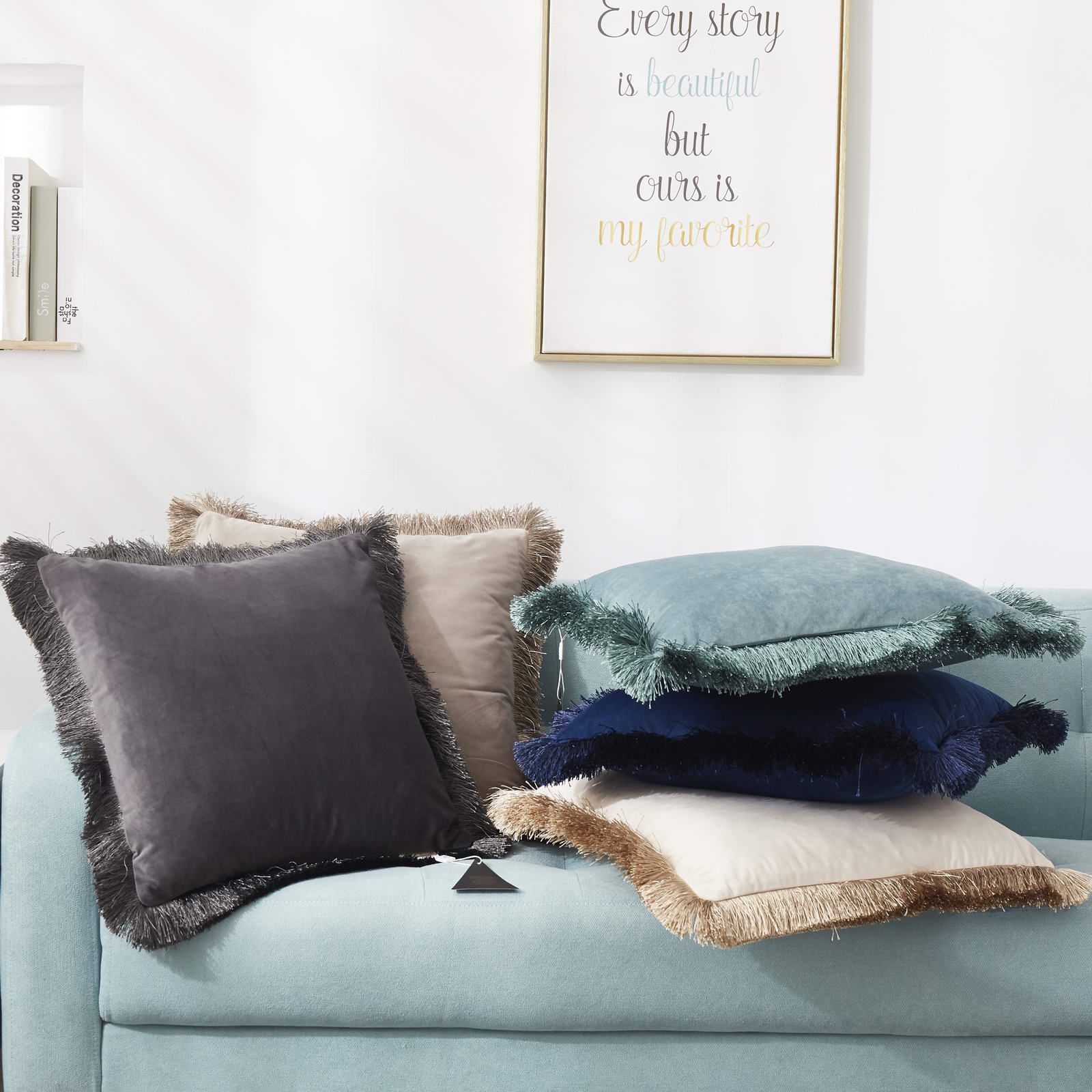 Декоративная наволочка с бахромой под цвет ткани по периметру наволочки