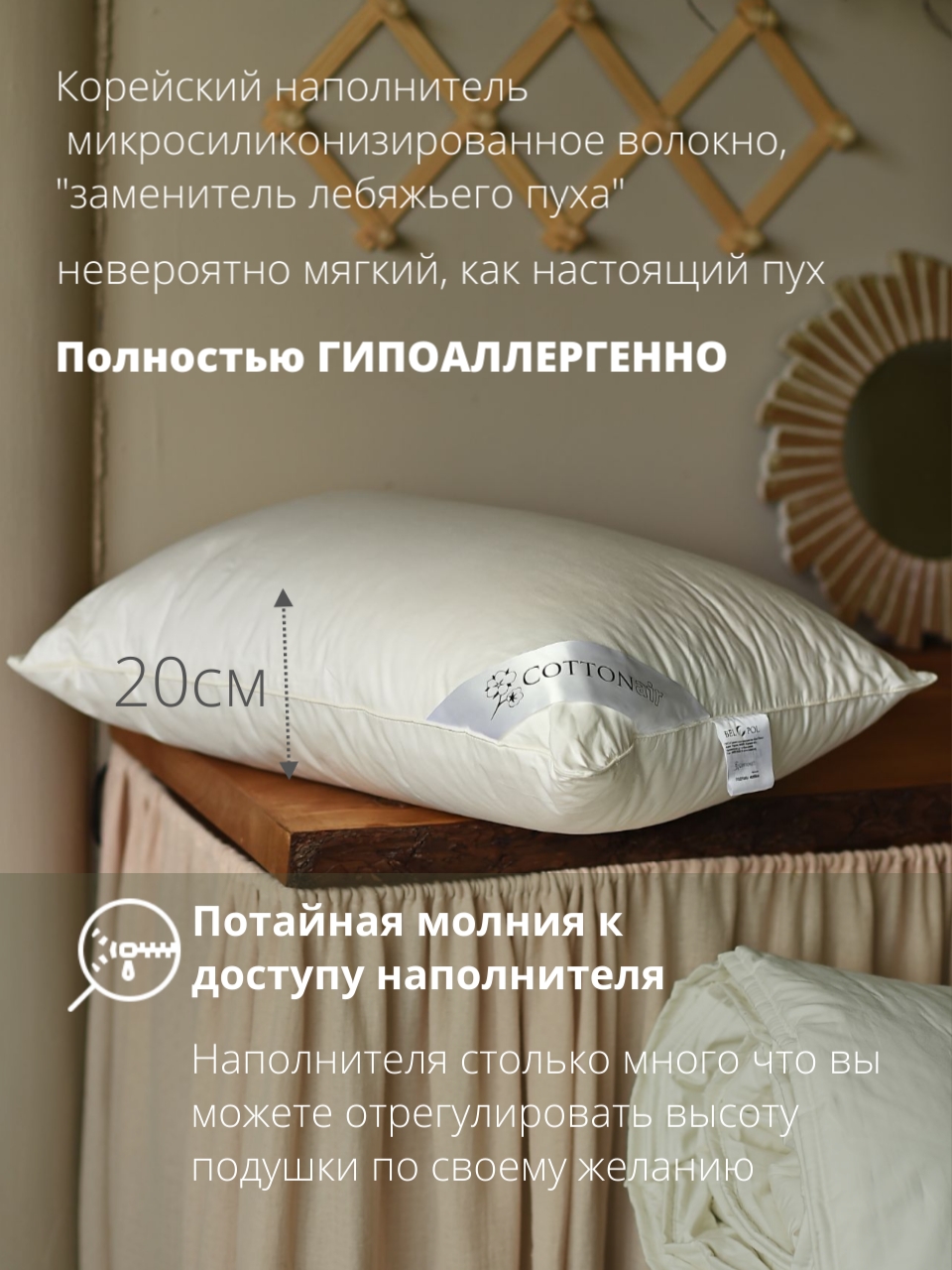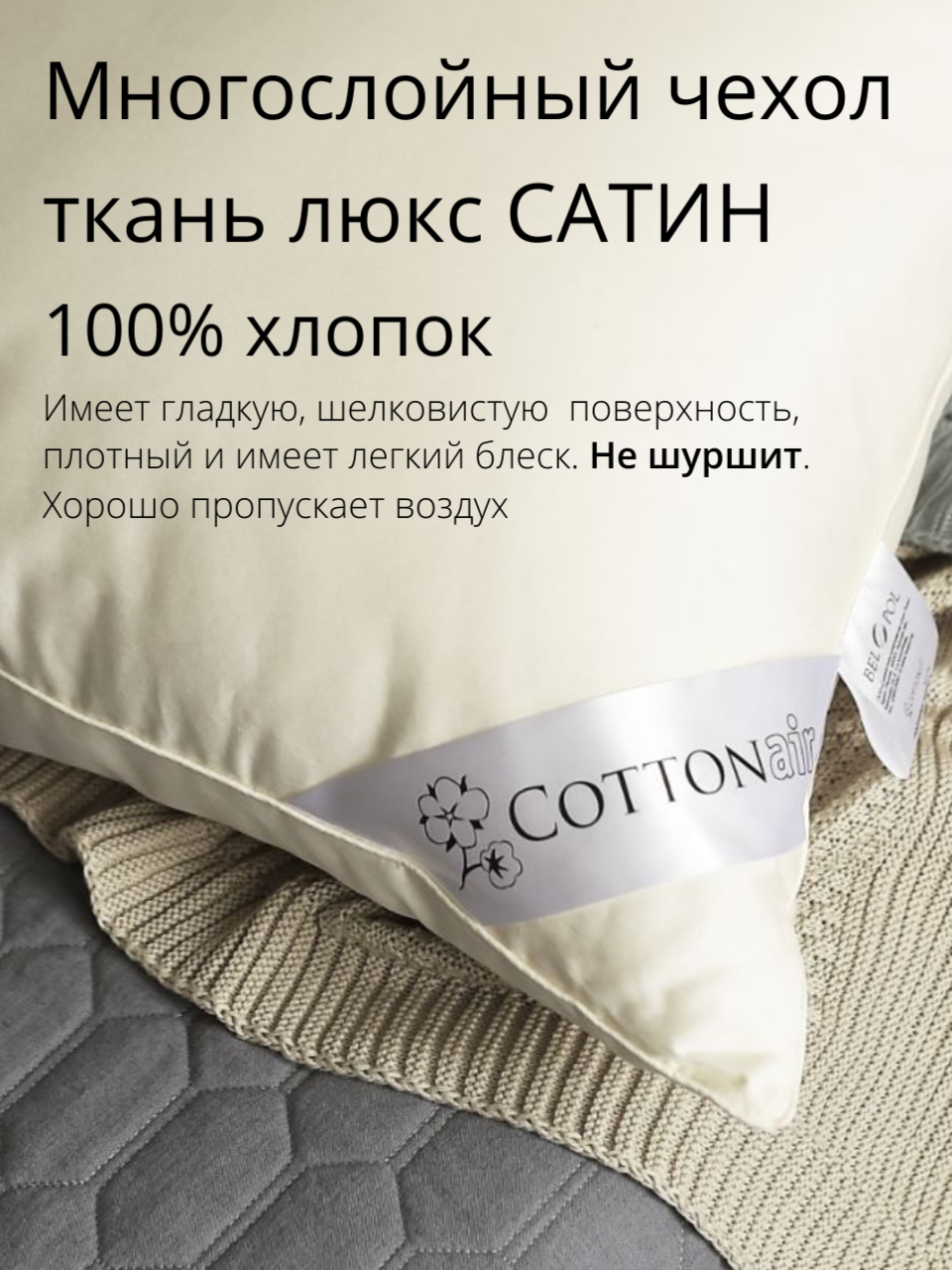 Подушка "COTTON AIR" --Хлопок, сатин