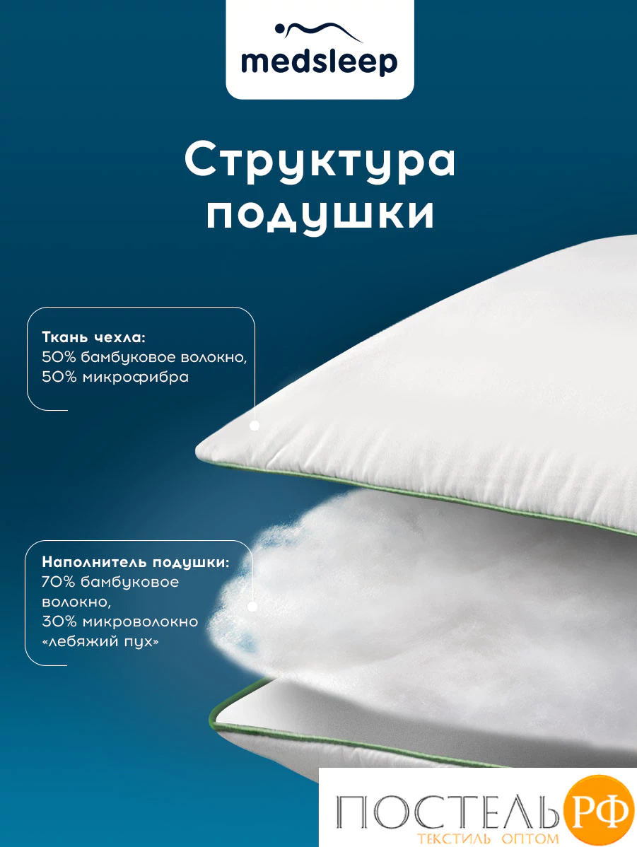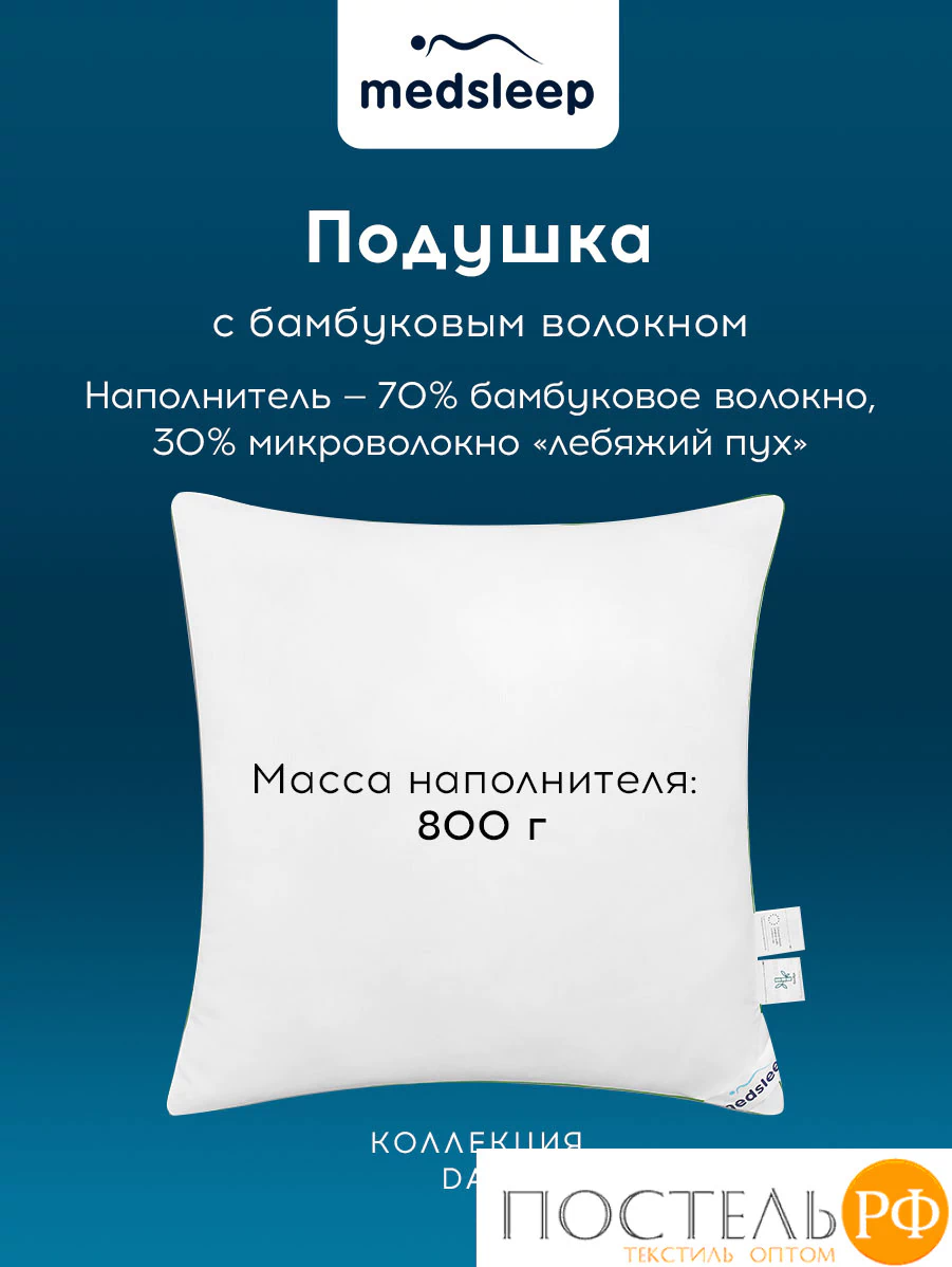 MEDSLEEP DAO Подушка 50х70,1пр.,микробамбук/бамбук/микроволокно, КТ