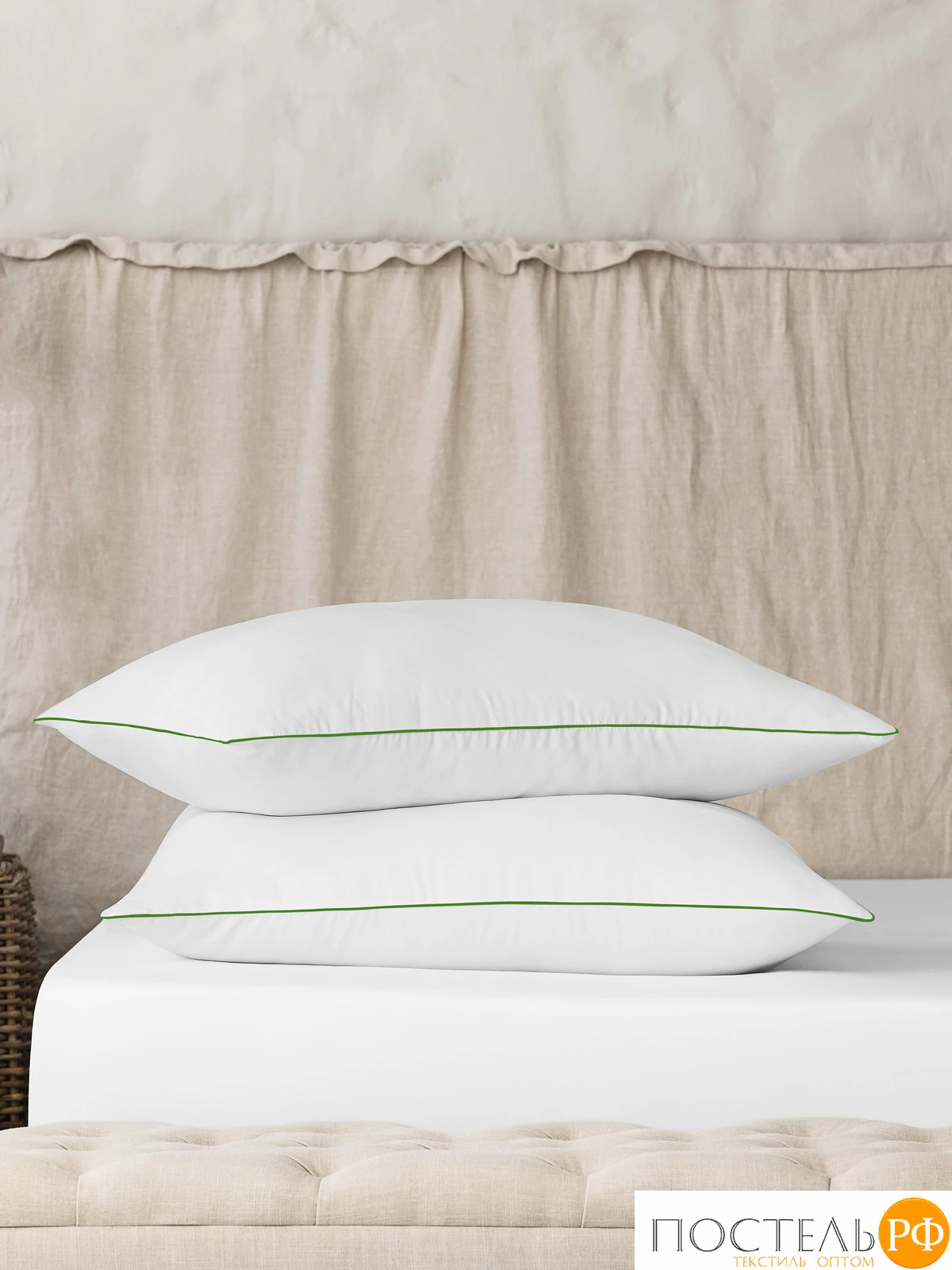 Подушку обрамляет красивый кант и брендированная угловая лента.