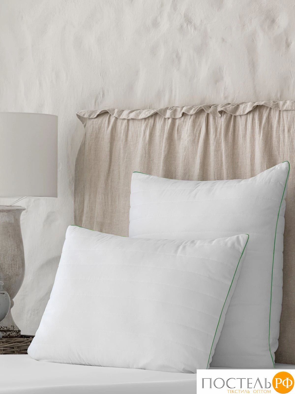 Подушку обрамляет красивый кант и брендированная угловая лента.