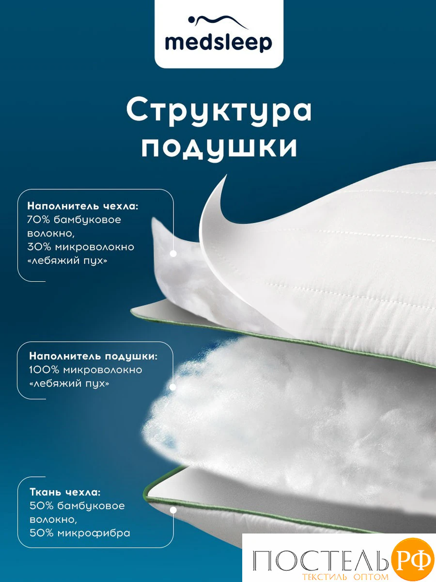Состав наполнителя чехла: 70% бамбуковое волокно, 30% полиэфирное волокно (Лебяжий пух Ultra Soft)