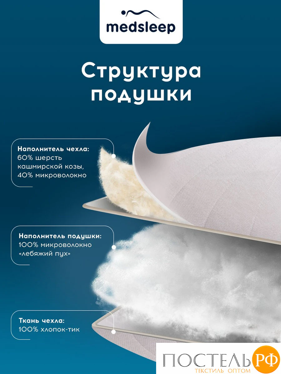 MEDSLEEP HIMALAYAS Подушка со съем стег чехлом 70х70,1пр.,хлопок/шерсть/микровол., КТ