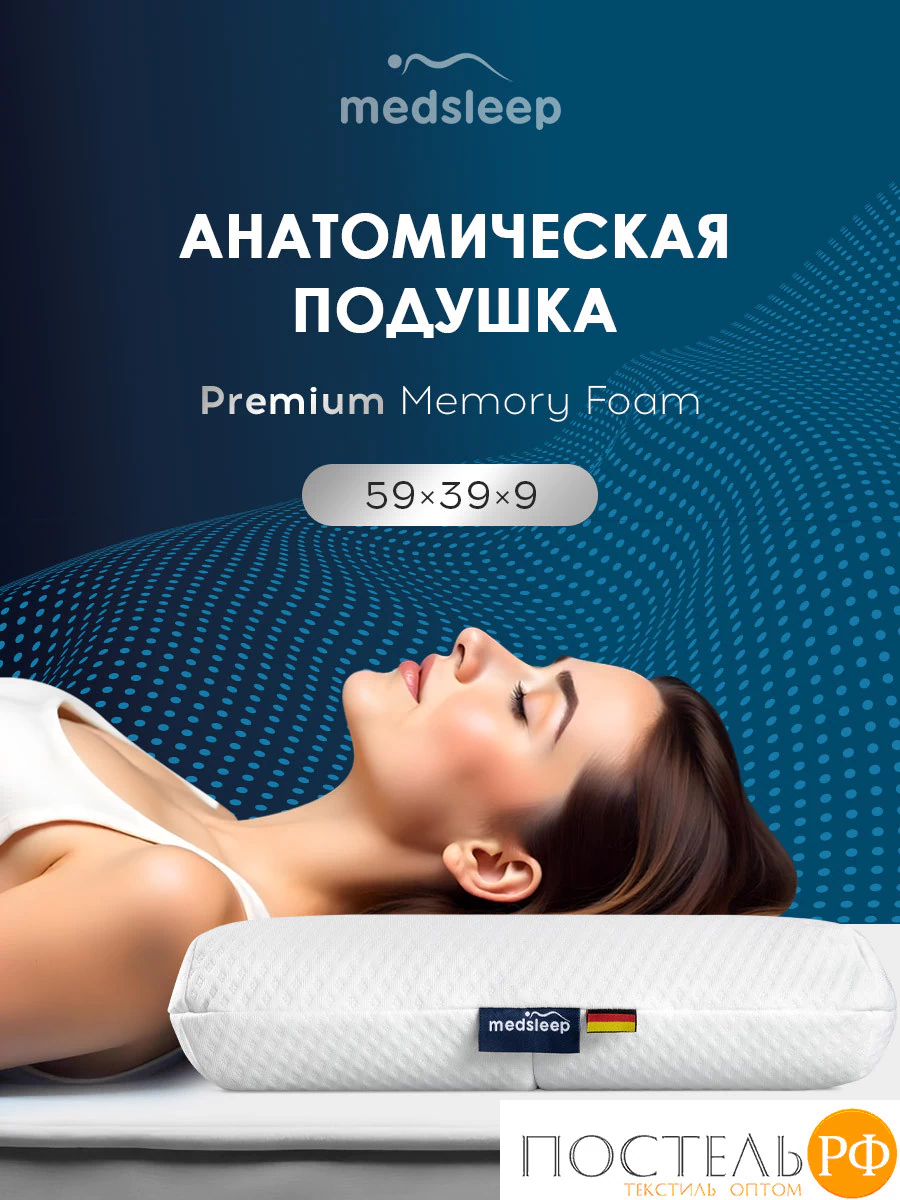 MedSleep МЕМОРИ КЛАССИК КУЛ бел Подушка анатомическая 59x39x9, 1 пр., плстр/пенополиуретан