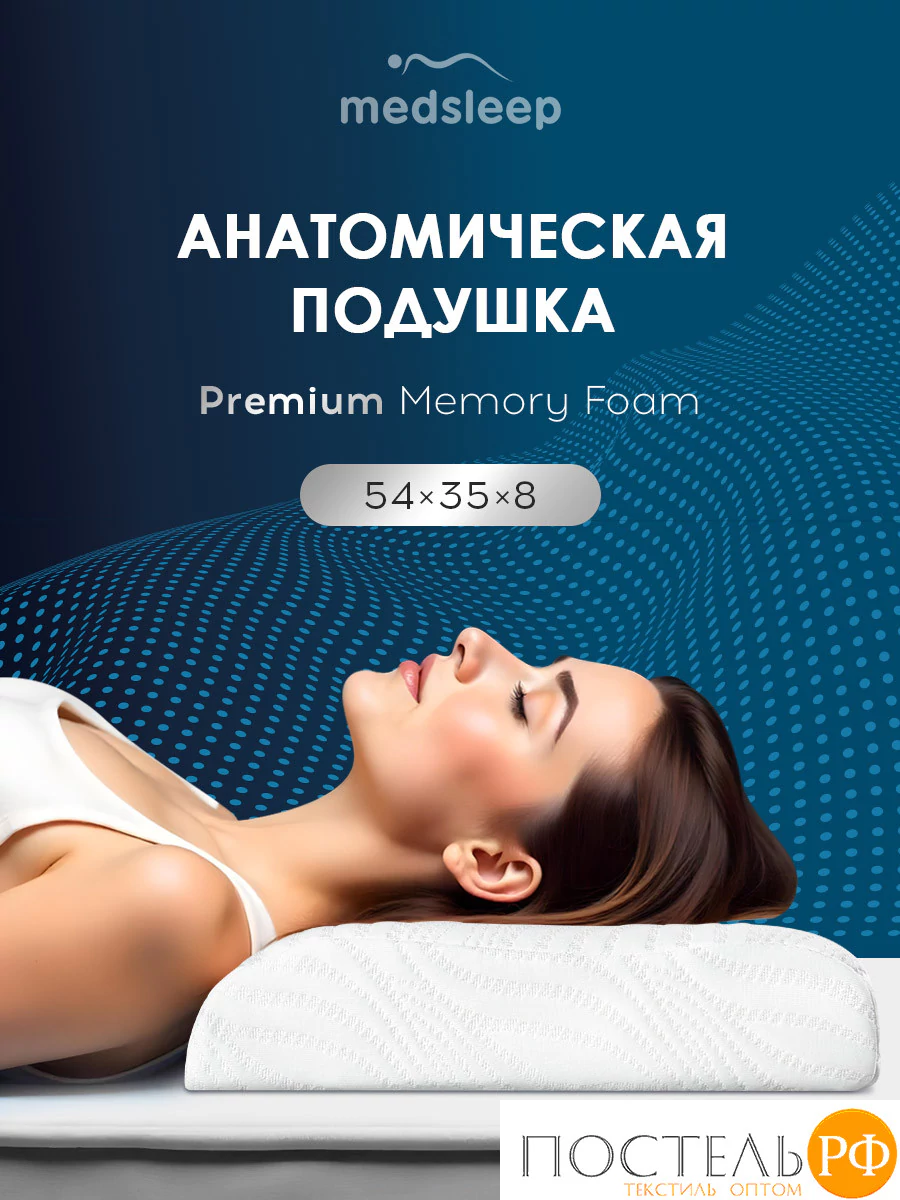 MedSleep МЕМОРИ ОРТО ХОЛД бел Подушка анатомическая 54х35х8, 1 пр., плстр/пенополиуретан