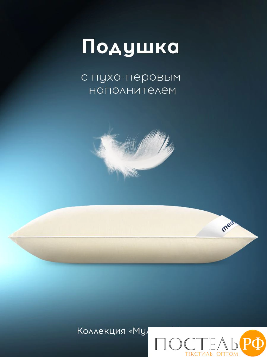 MEDSLEEP МУЛАРД M Подушка 70х70, 1пр., хлопок-тик/пух-перо, 1700г, КТ
