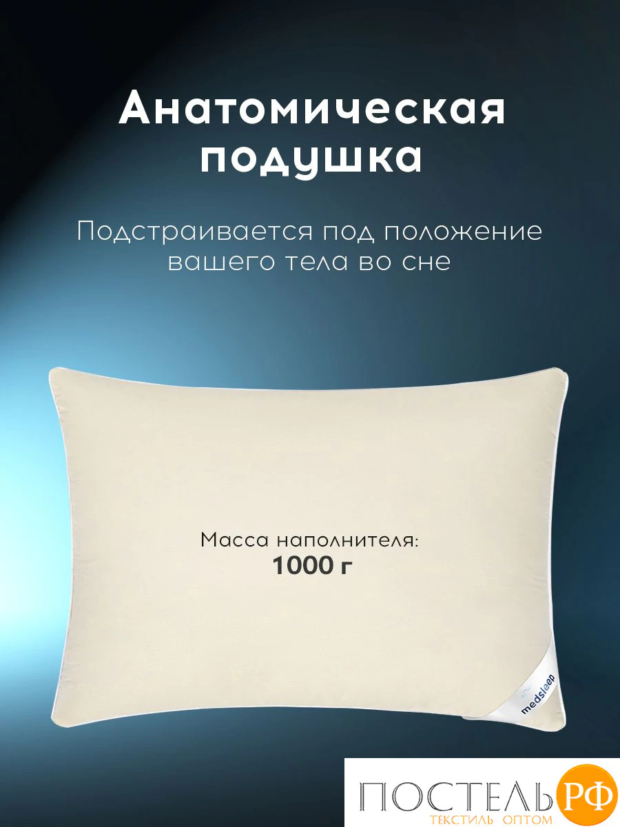 MEDSLEEP МУЛАРД S Подушка 70х70, 1пр., хлопок-тик/пух-перо, 1300г, КТ