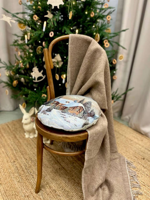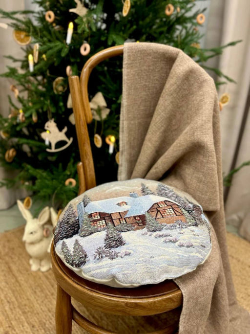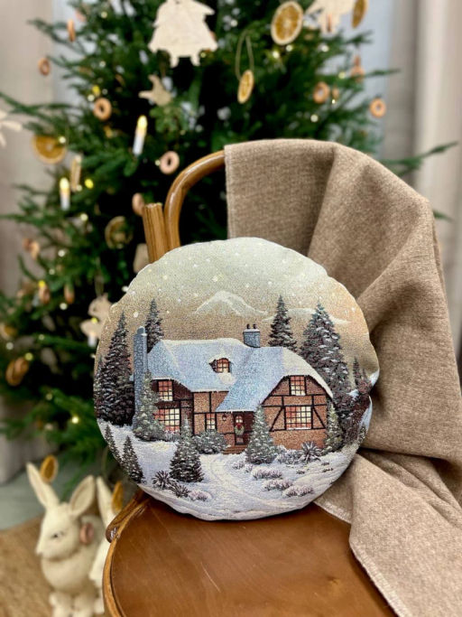 Новогодний вечер беж Дом коричневый Подушка д44 см 2520564