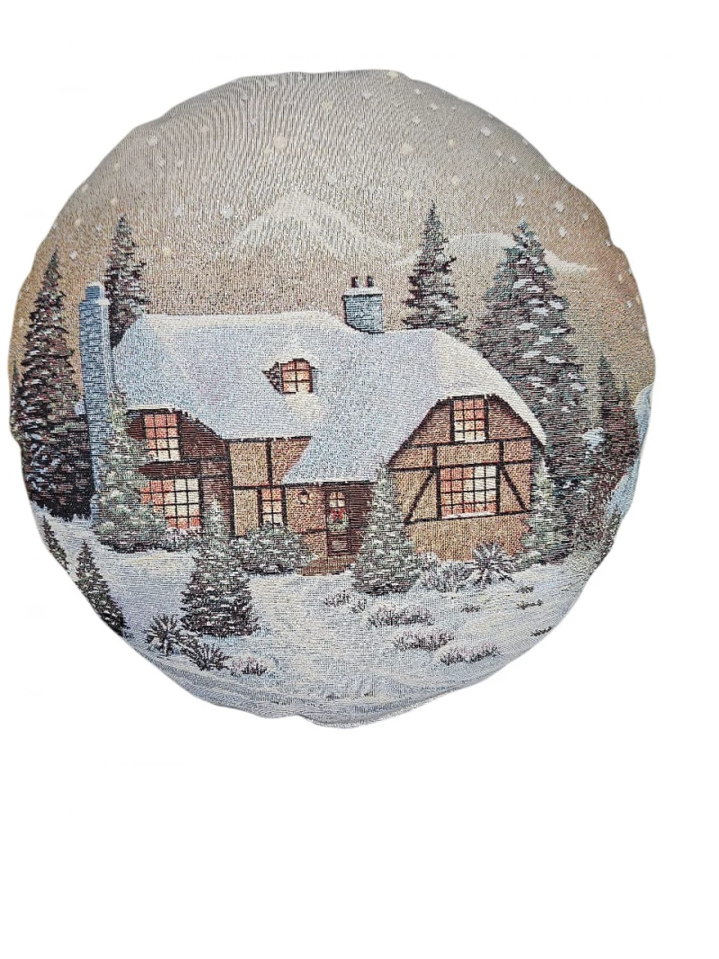 Новогодний вечер беж Дом коричневый Подушка д44 см 2520564