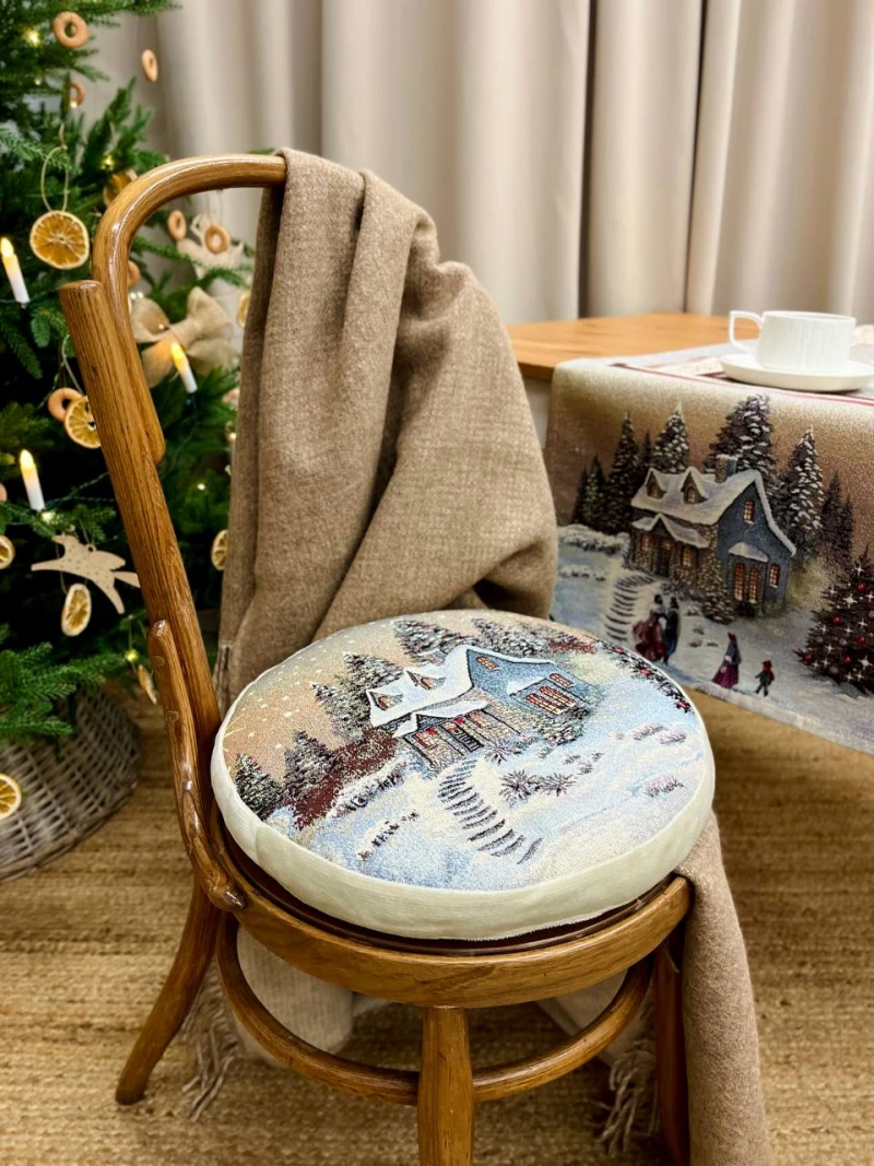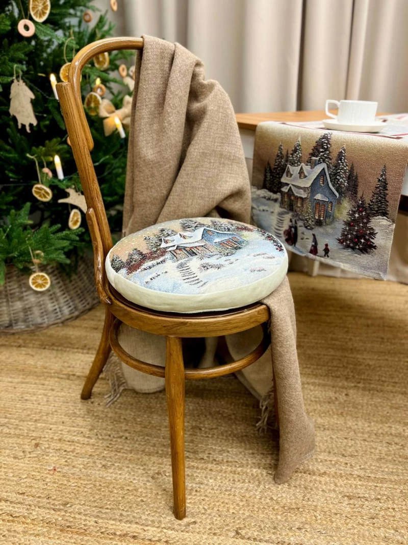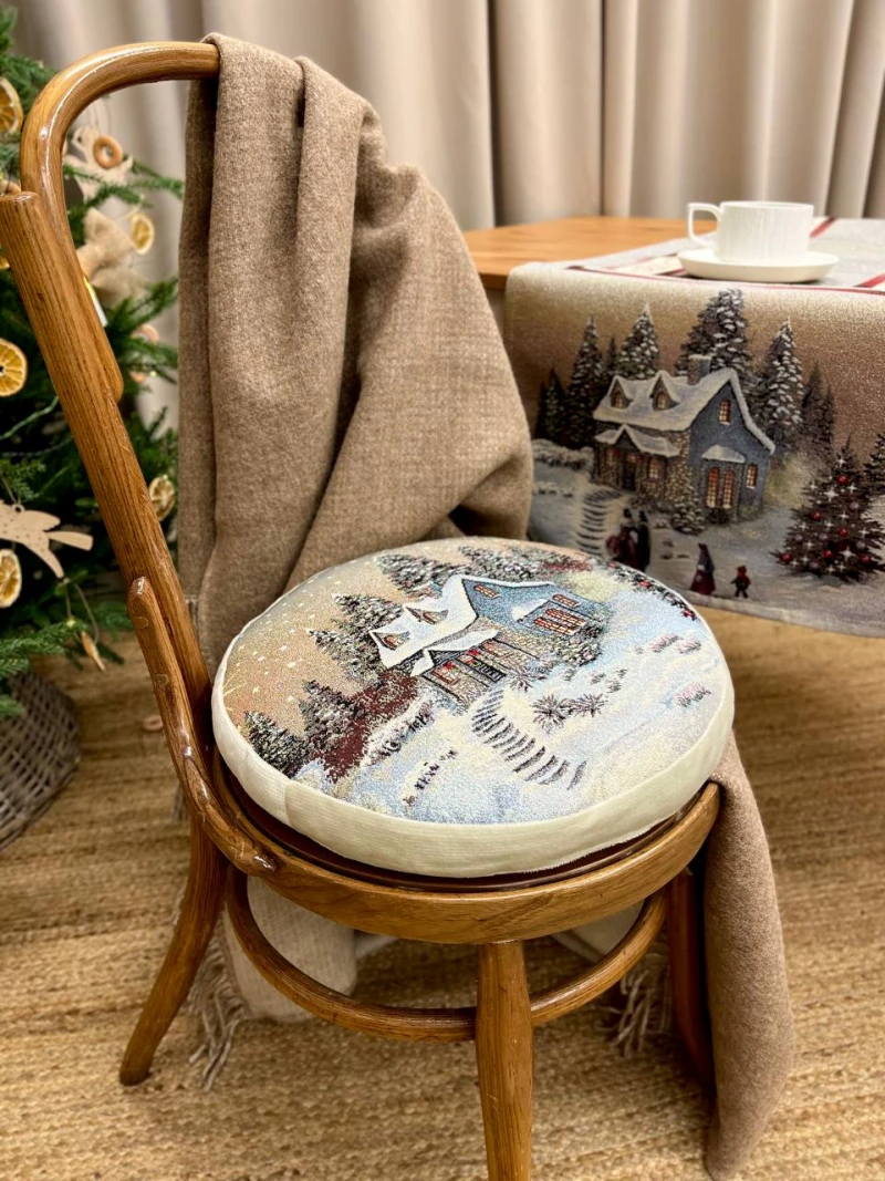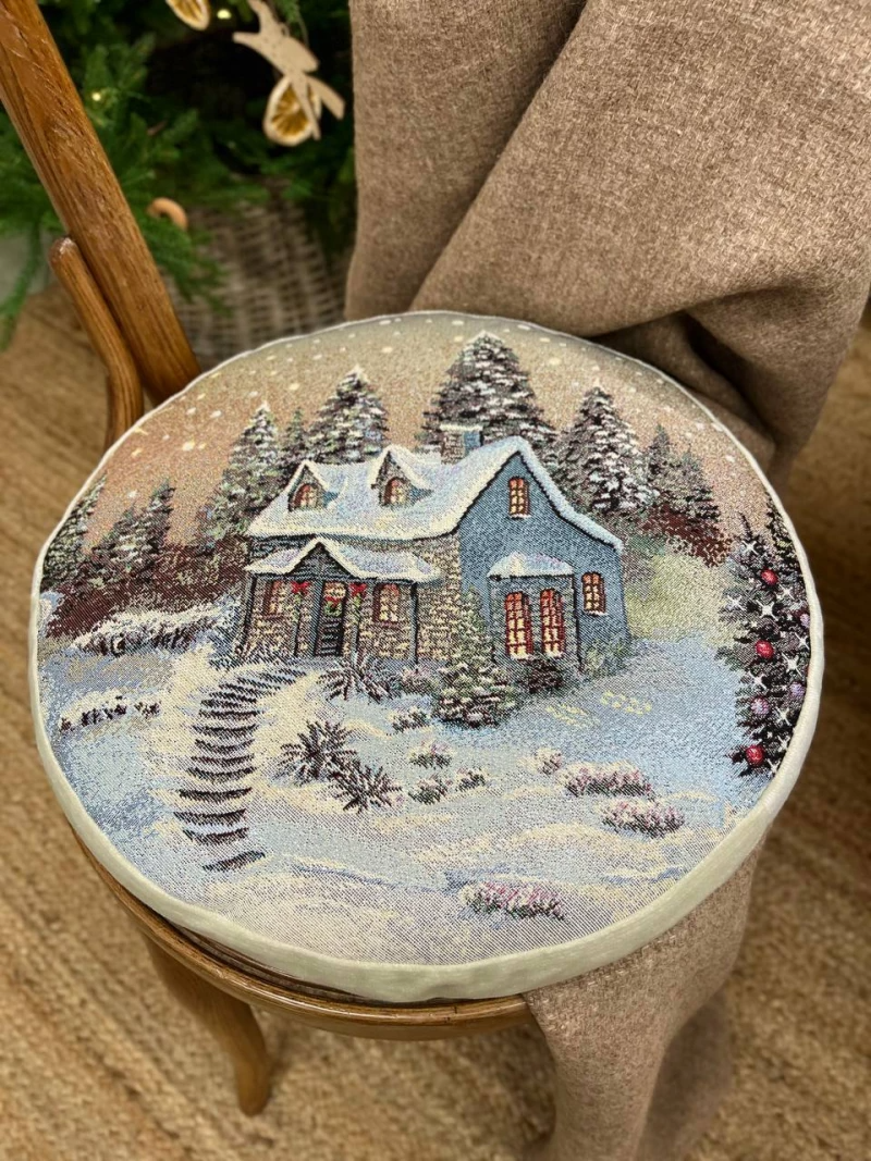 Новогодний вечер беж Домик 2 Подушка д37 см 2521210