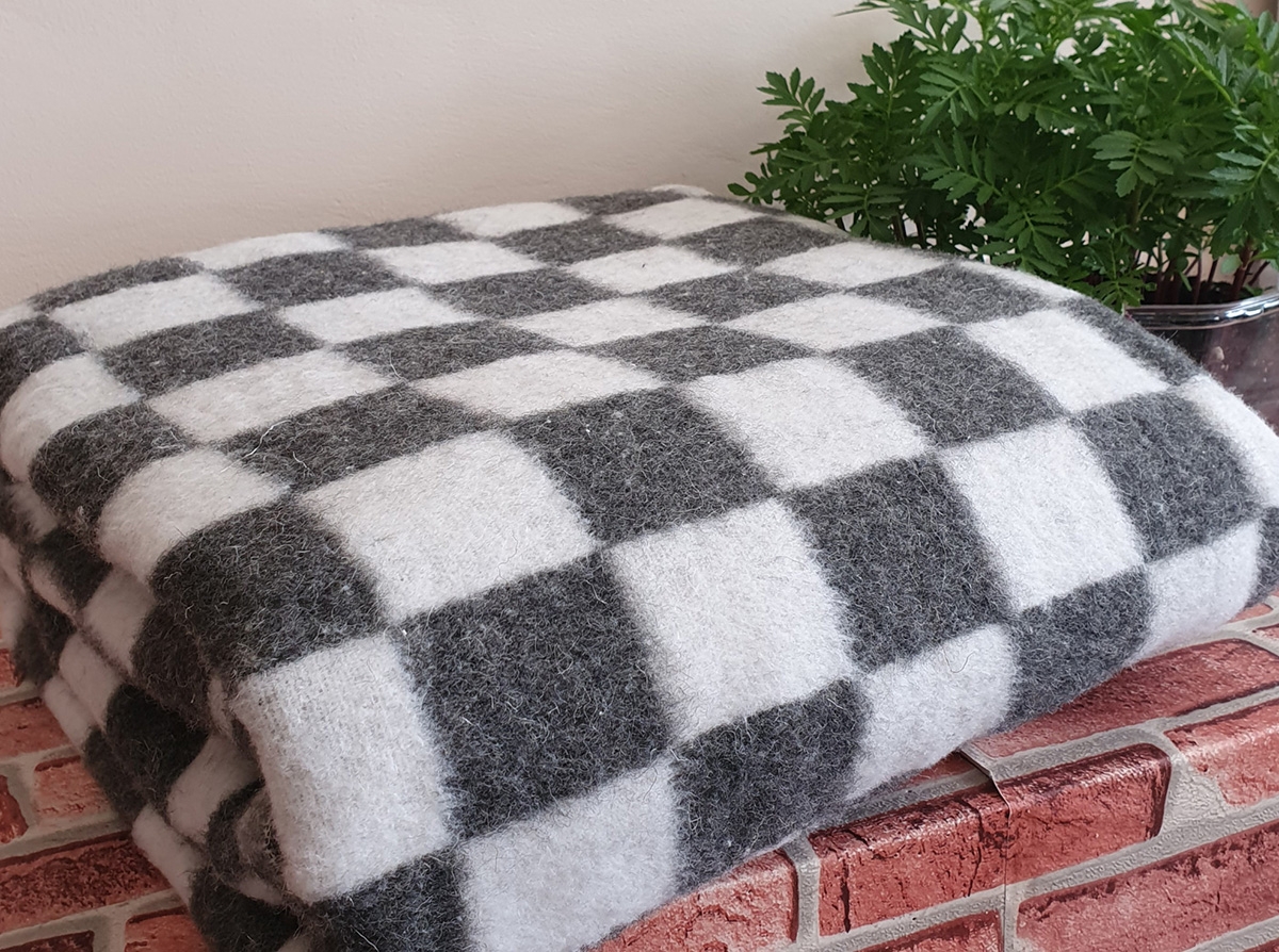 Одеяло 50% ОПШ-3 Клетка п/шерсть 100*140 сер-бел