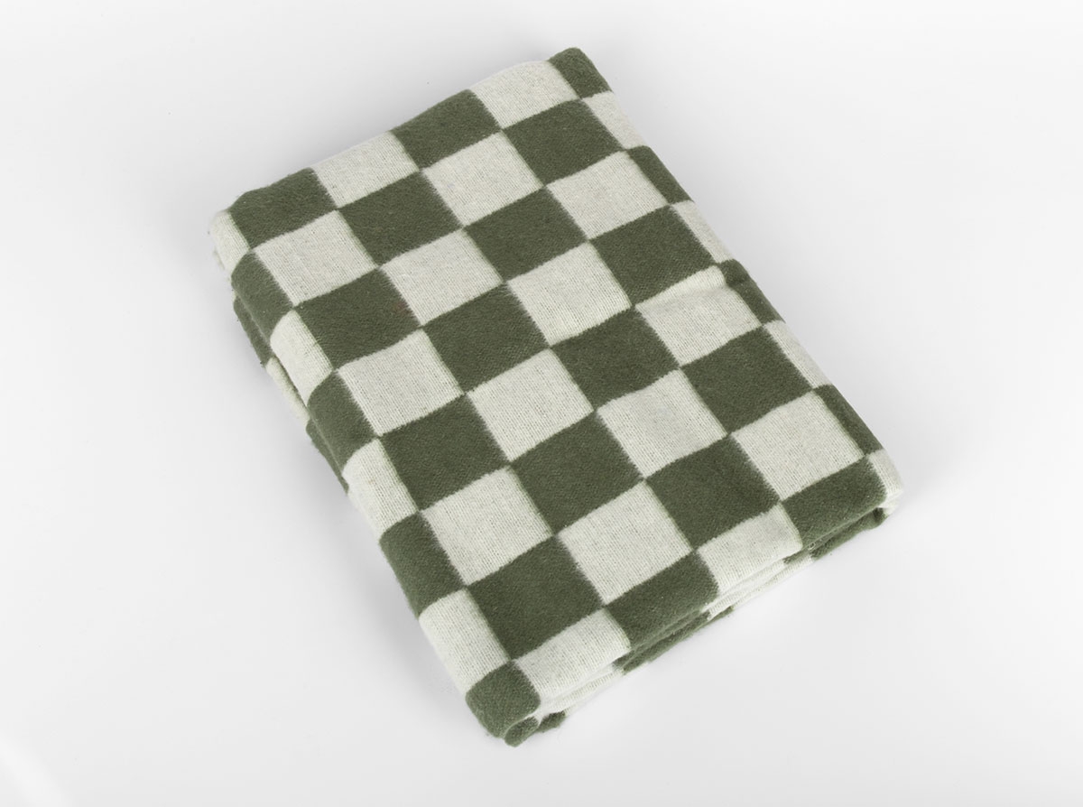 Одеяло байковое 140*205 клетка цв.хаки (Россия)