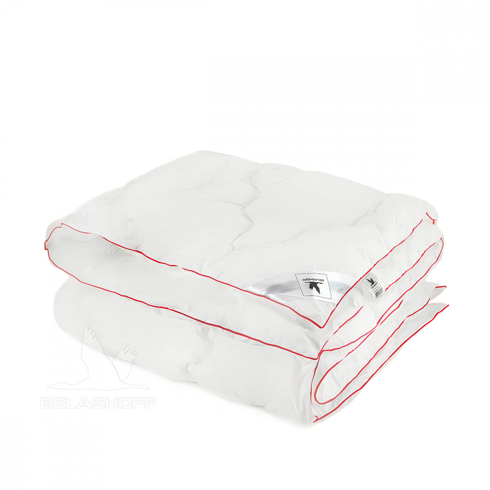 Как на фото Одеяло «Гармония» в белоснежном чехле из хлопкового тика с ярким красным кантом. Легкое, воздушное, объемное и при этом теплое. Выполнено с наполнителем из полиэфирного микроволокна, максимально приближенного по своим свойствам к натуральному пуху.