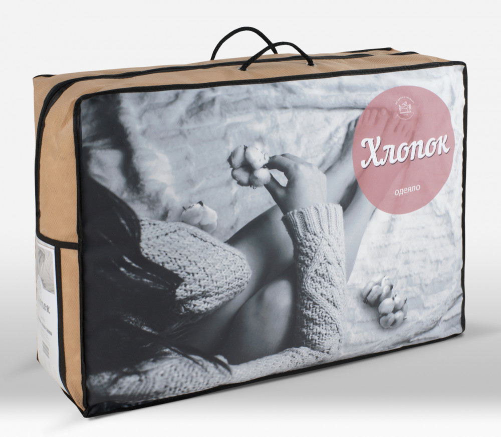 В ассортименте Что может быть натуральнее чистого хлопка? В старые времена ватные одеяла очень ценились за теплоту и экологичность. Современные одеяла из хлопка стали гораздо легче, мягче и долговечнее. Одеяло «Хлопок» наполнено, как ни странно, смесью хлопкового и полиэфирного волокон. При использовании оно не теряет мягкость и объем, потому что хлопковые волокна тщательно расчесаны и специально обработаны. Чехол из поликоттона хорошо держит форму. Он простеган вместе с наполнителем (400г/м2) и отделан декоративным кантом. Бежевый чехол с принтом в виде цветов хлопка перекликается с рисунком на упаковочной сумке.