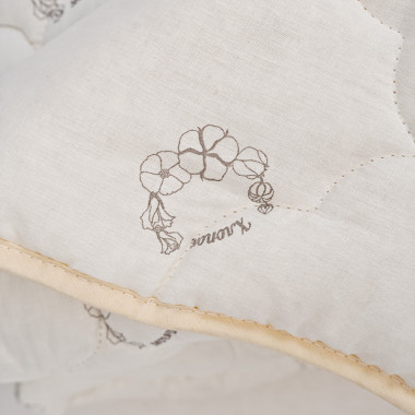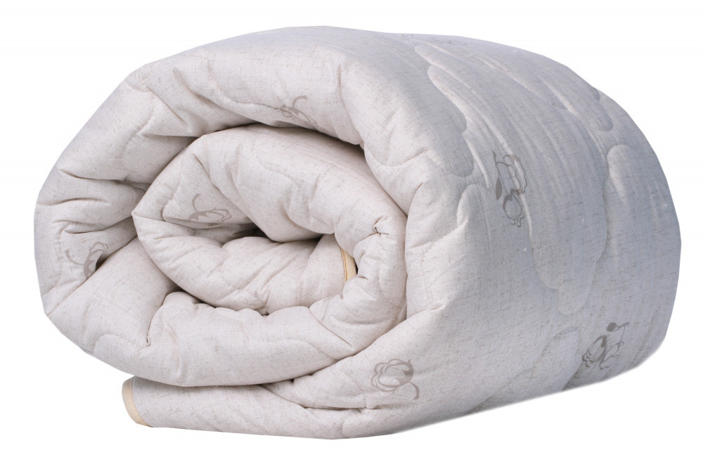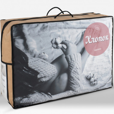 В ассортименте Что может быть натуральнее чистого хлопка? В старые времена ватные одеяла очень ценились за теплоту и экологичность. Современные одеяла из хлопка стали гораздо легче, мягче и долговечнее. Одеяло «Хлопок» наполнено, как ни странно, смесью хлопкового и полиэфирного волокон. При использовании оно не теряет мягкость и объем, потому что хлопковые волокна тщательно расчесаны и специально обработаны. Чехол из поликоттона  хорошо держит форму. Он простеган вместе с наполнителем (400г/м2) и отделан декоративным кантом. Бежевый чехол с принтом в виде цветов хлопка перекликается с рисунком на упаковочной сумке.